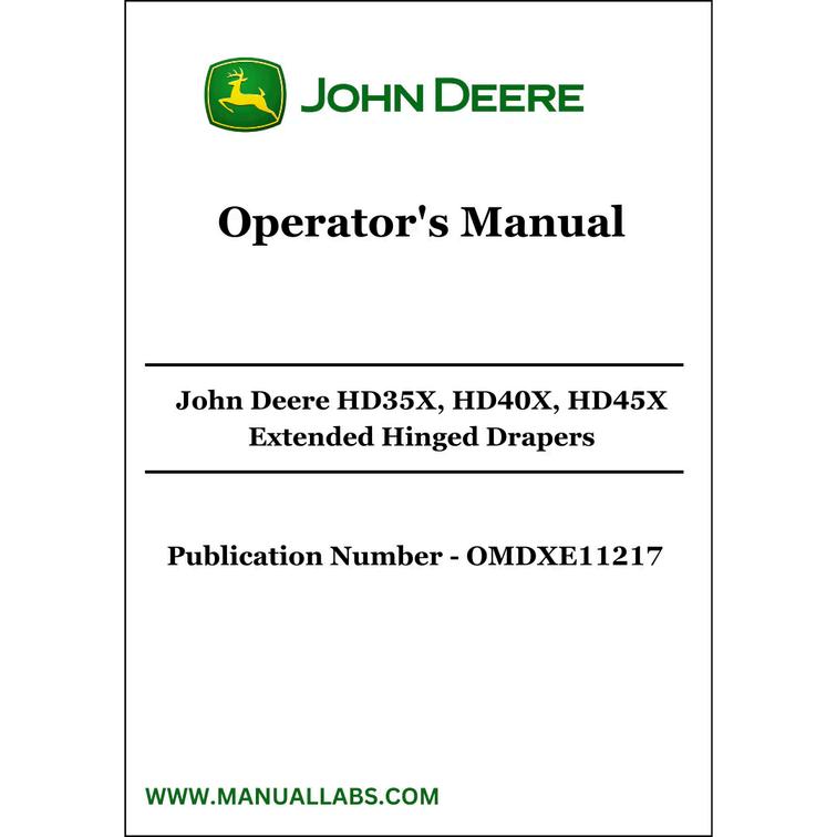 Discover the comprehensive operator's manual for John Deere HD35X, HD40X, HD45X Extended Hinged Drapers. Get detailed instructions and insights.