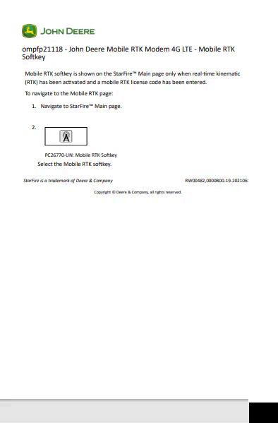 Repair PDF Catalogue for premium images, precise diagrams, illustrations, and convenient bookmarks for swift navigation. John Deere Mobile RTK Modem 4G LTE Operator's Manual OMPFP21118
