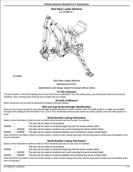 1. Discover the comprehensive parts catalogue manual for John Deere BH10B Backhoe Worksite Pro Backhoes. Find all the essential information you need.