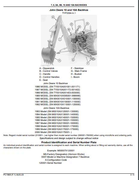 5. Keep your John Deere 10 - BACKHOE models 7, 8, 8A, 8B, 10, and 10A running smoothly with our detailed parts catalog manual (PC1969). Find everything you need for maintenance and repairs.