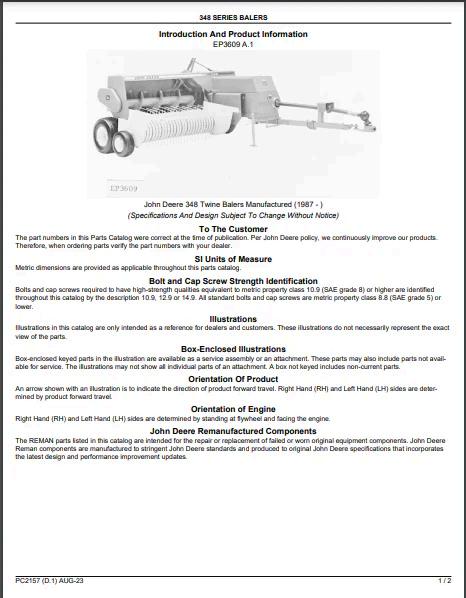 Explore our comprehensive John Deere 348 Baler Parts Catalogue Manual (PC2157) for all your agricultural equipment needs.