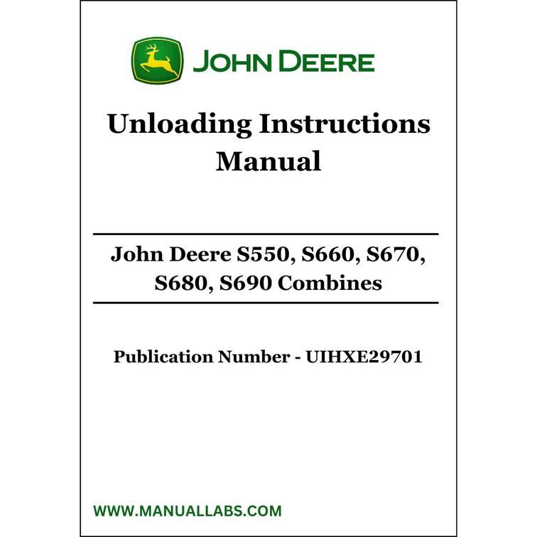 Discover the comprehensive John Deere S550, S660, S670, S680, S690 Combines Unloading Instructions Manual UIHXE29701 on our website.