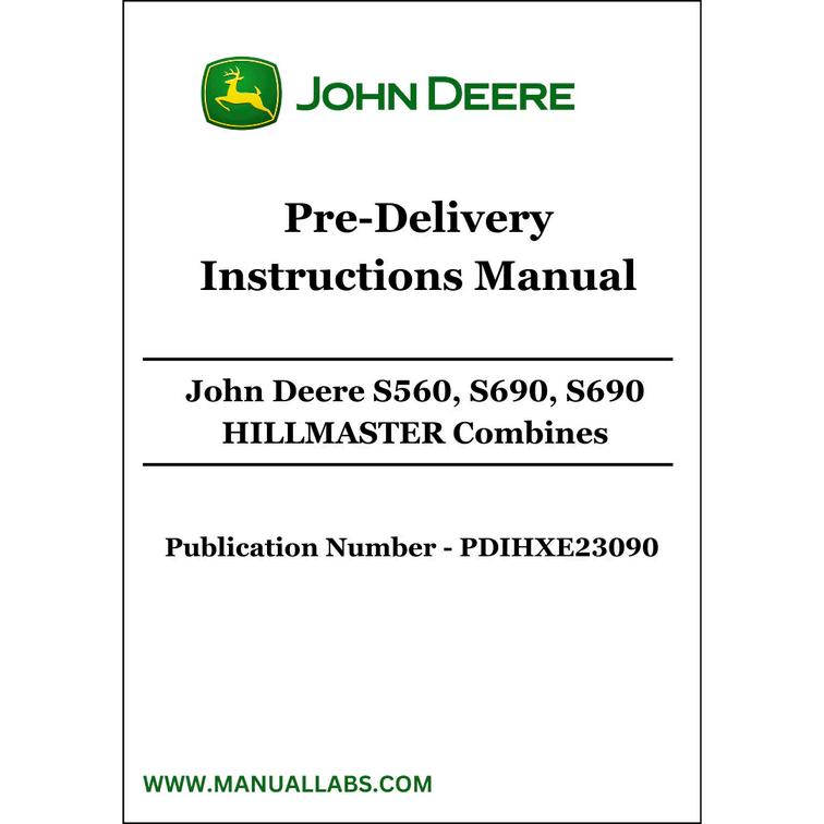 Explore our comprehensive John Deere S560, S690, S690 HILLMASTER Combines Pre-Delivery Instructions Manual PDIHXE23090 for expert guidance.