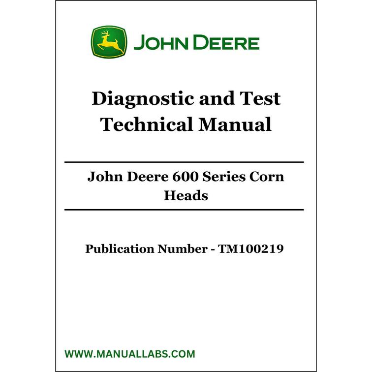 Discover the comprehensive John Deere 600 Series Corn Heads Diagnostic and Test Technical Manual TM100219. Enhance your knowledge with this essential resource. John Deere 600 Series Corn Heads Diagnostic and Test Technical Manual TM100219