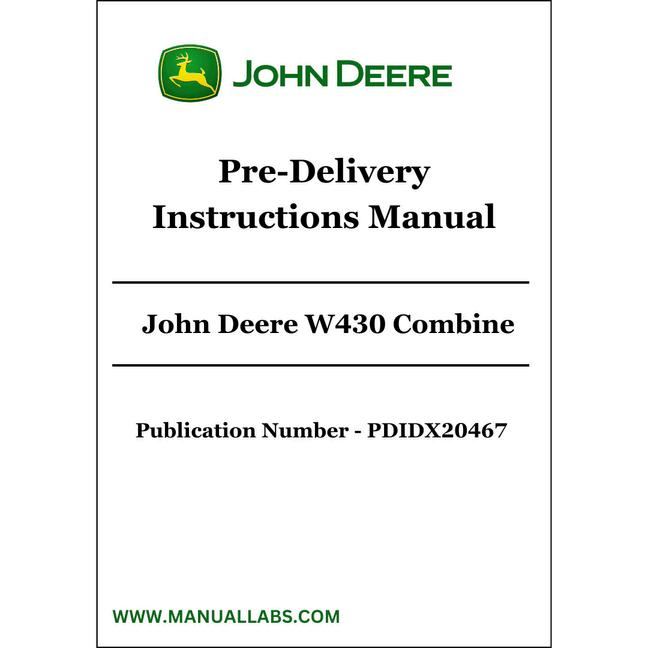 2. Discover the essential PDIDX20467 Pre-Delivery Instructions Manual for your John Deere W430 Combine. Optimize your farming operations with ease.