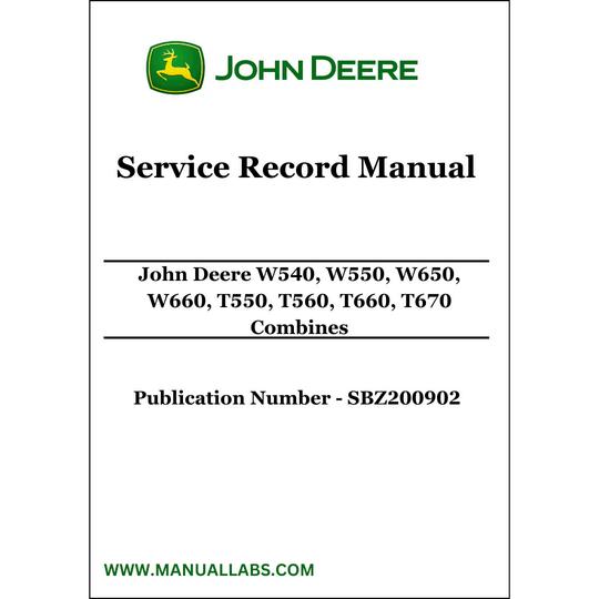 John Deere W540, W550, W650, W660, T550, T560, T660, T670 Combines Service Record Manual SBZ200902