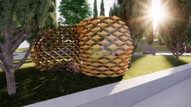 The soul-tree es un pabellón reutilizable buscando así que este sea reciclado o reutilizable y a su vez buscando que cada usuario tenga una intersección entre espacio, arquitectura y usuario