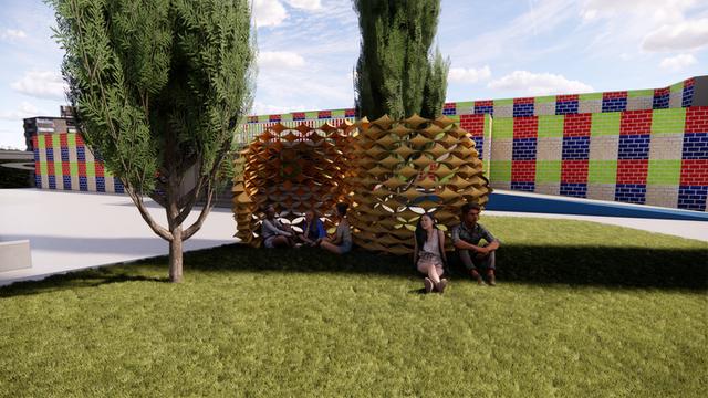 Se intervino un espacio con la intención de reactivar la zona y crear un espacio recreativo para los estudiantes con una mesa implementada para realizar actividades académicas en el sitio dando la posibilidad de acondicionar el espacio de acuerdo a lo qué necesita el usuario