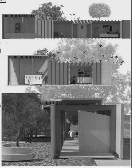 s una intervención de bajo contraste dentro del contexto Universitario, el cual propone un sistema de madrigueras, generando un espacio donde las personas, a través de la atmósfera propuesta pueden potenciar el vínculo que tienen consigo mismos, dando así, una alteración en el funcionamiento del contexto, acoplandose a este y creando una escapatoria de lo que lo rodea.