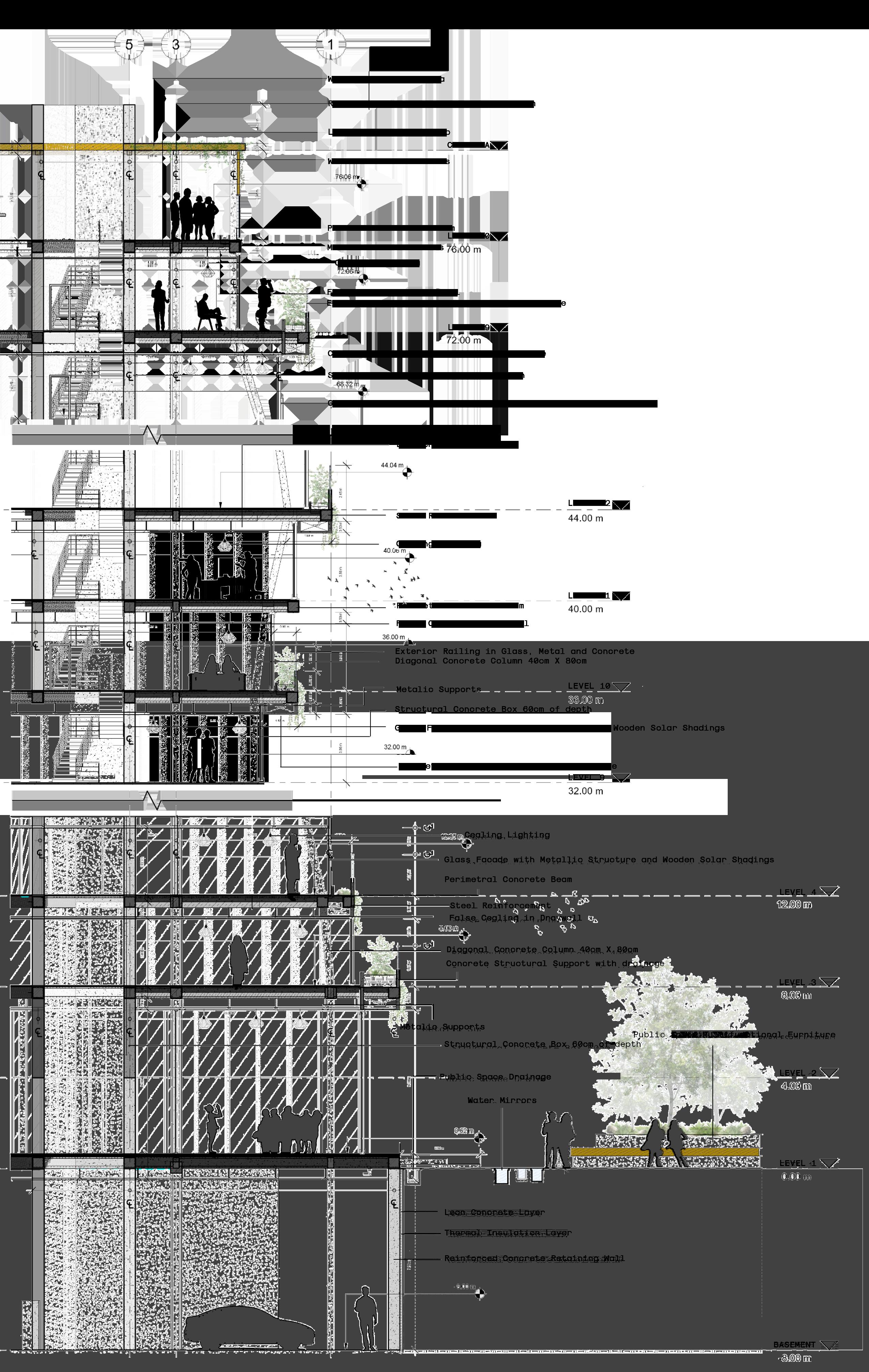 Description: The Atelier Habitat of the XXI Century is developed around the idea of articulation between modern day and future housing, in addition to existing and emerging functions of the expanding city. The main aim of the design strategy, regards the promotion of a productive habitat, in which, residential units cohabitate with mixed uses such as commercial and office spaces. Furthermore, public space plays a crucial role as a link between the activities, not only in the ground floor areas but in the higher levels of the complex as well in the shape of platforms and spaces for communal activities, . The landscape design gives the possibility to implement productive areas for urban agriculture and sustainable solutions regarding nature base strategies. The building includes residencial, commercial and office spaces, in the serch of a more compact and efficent way of inhabiting the expanding areas of the urban perimeter.