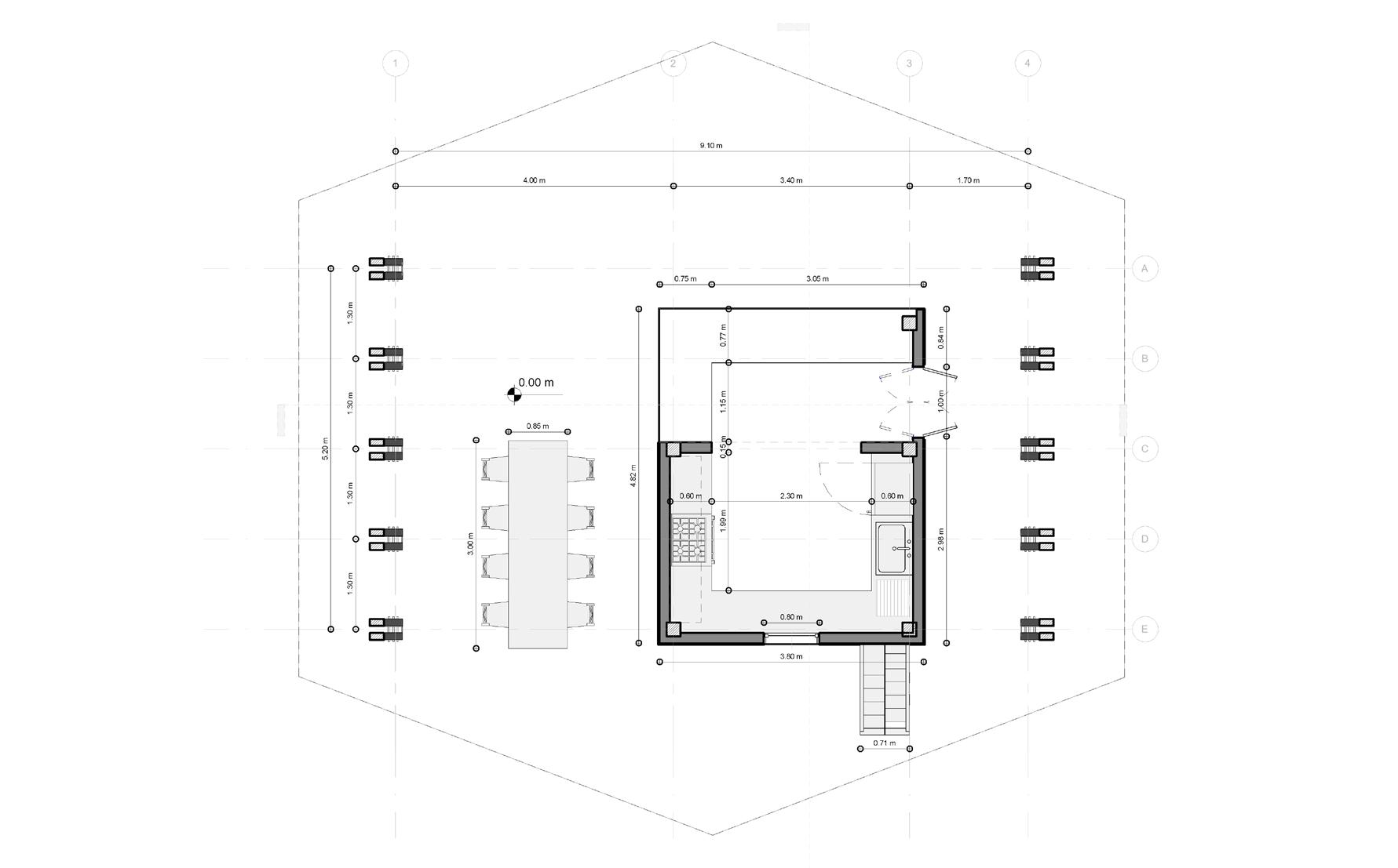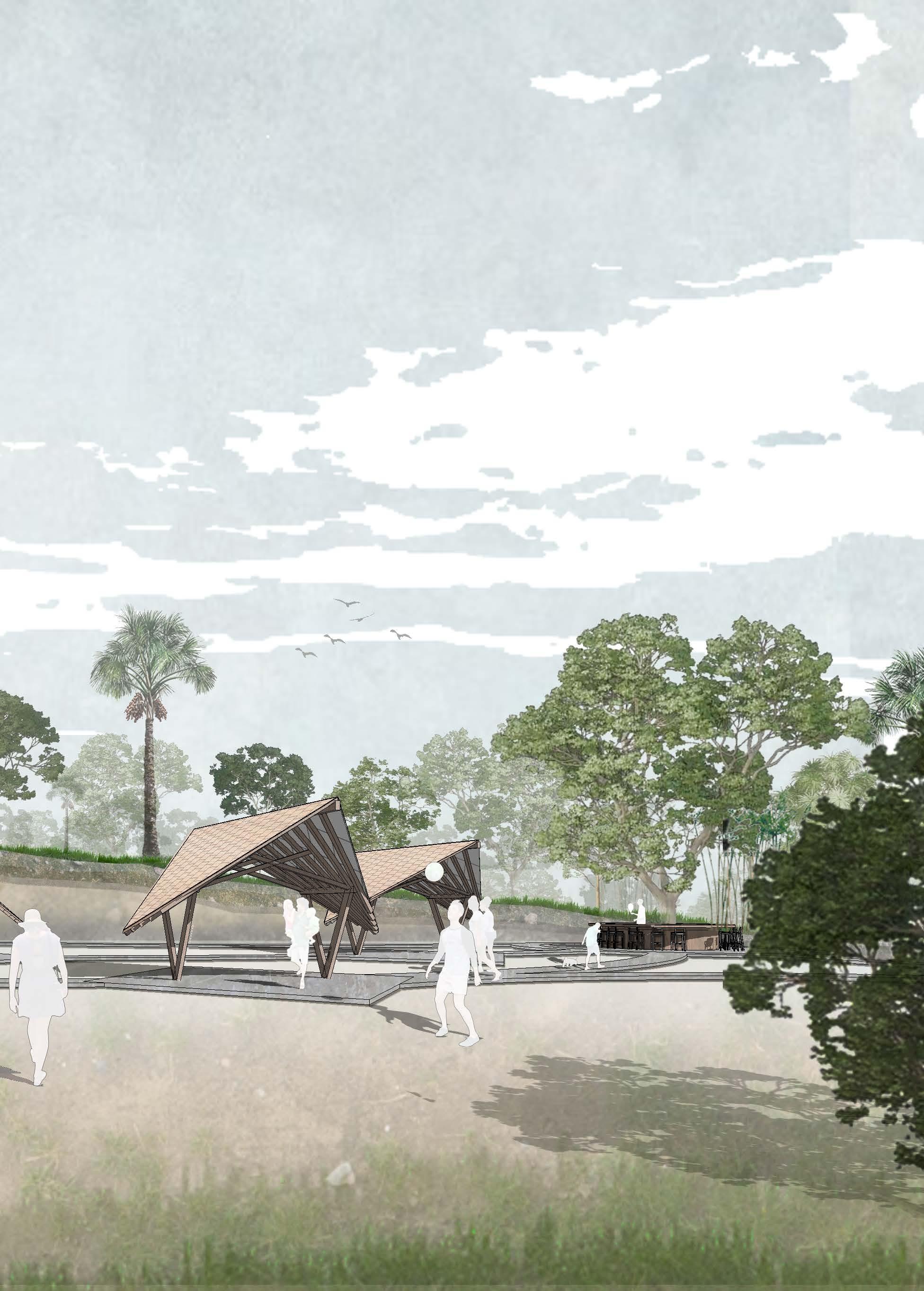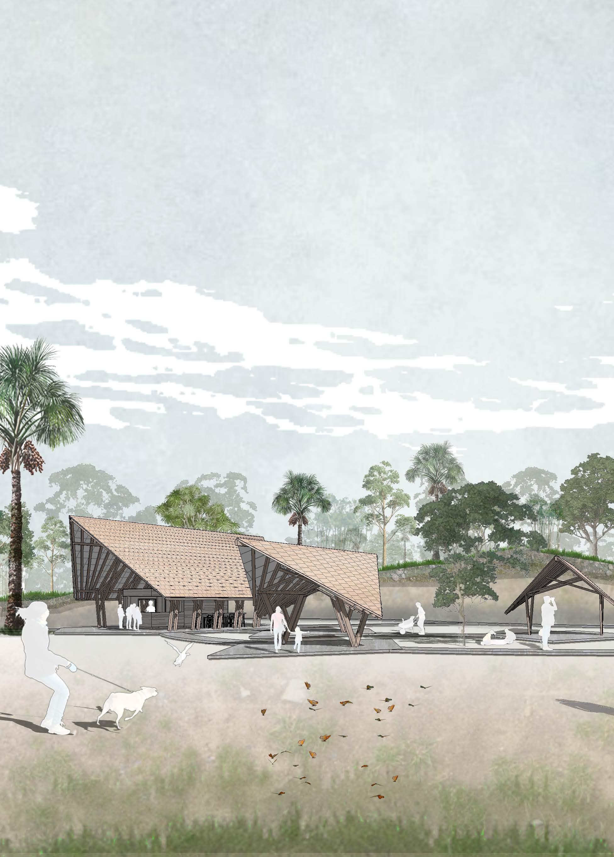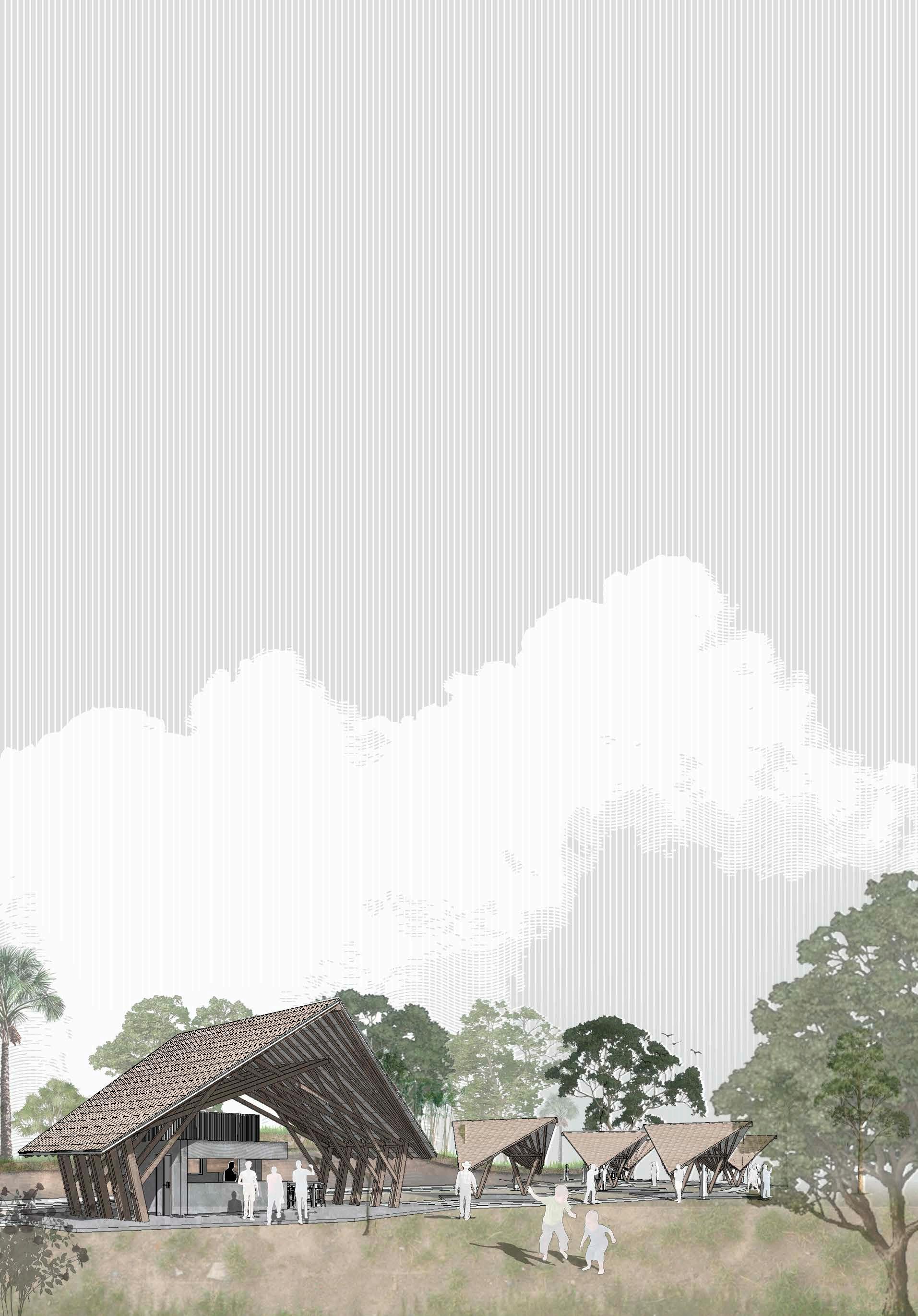 The project was mainly designed as a sensible landscaping intervention, for the continuation of a larger series of infrastructures for sustainable tourism, developed in the region of Florencia, Caquetá, Colombia. The design is oriented towards a vernacular architecture, with materials and techniques traditional from the area, making the construction process easier, more efficient and sustainable. The architectural program itself is quite simple, consisting on an outdoor kitchen, dining areas and a landscaping intervention to connect everything together with the green natural context that surrounds the project. The design concept corresponds to wooden modules that allow a free disposition of the covered areas, in order to take advantage of the natural landscape and play with the steep topography of the plot. The modules are connected by a pedestrian pathway that allows the outdoor activities to connect to one another. Furthermore, taking in account the limited economic and material resources the project kept a simple but sustainable approach, providing exact information regarding quantities and material prices for the whole construction.