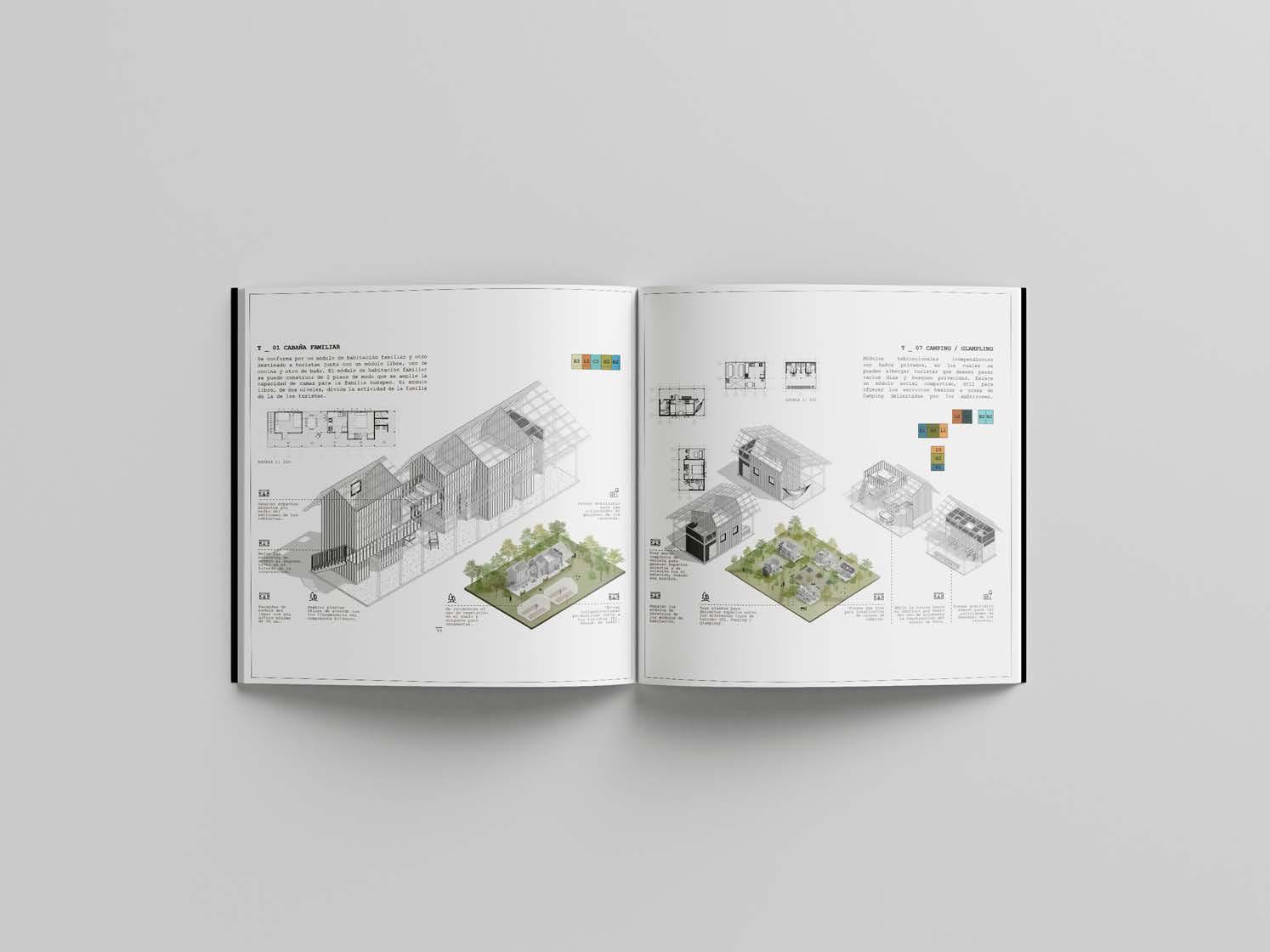 Book developed under the direction of AGRA Architecture Studio, UK PACT Colombia, Rutas Turísticas por los Bosques y la Paz: Design, construction and adaptation guide for local touristic infrastructures in the “Serranía del Perijá” (Colombia).