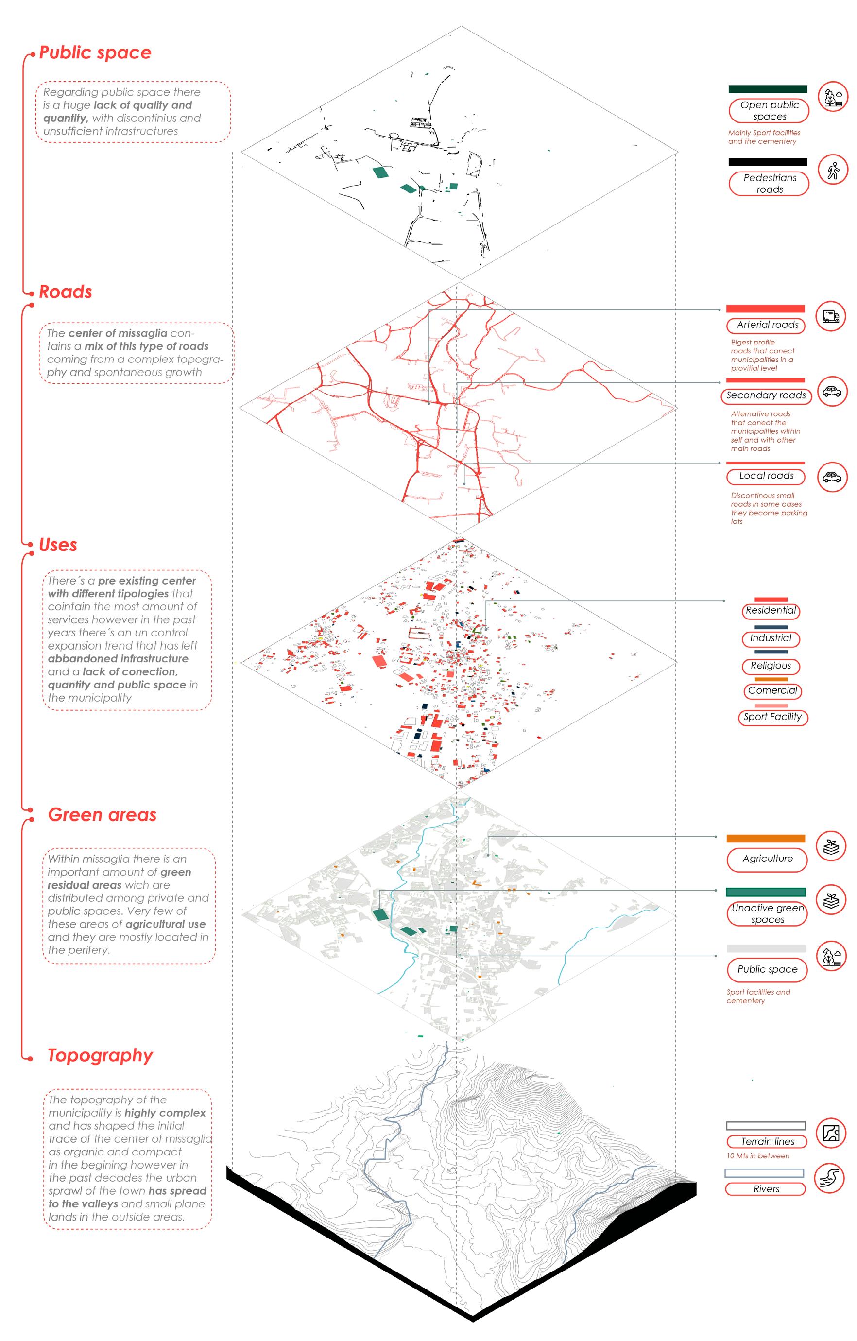 Regarding the urban vision for to project it was crucial to consider the restructuring and reuse of existing infrastructures in the most relevant point of connection between Missaglia and the other municipalities of the province. Furthermore, a quantitative and qualitative contribute of effective public space for the community as a response to the lack of general public space, predominance of vehicular and private infrastructure.