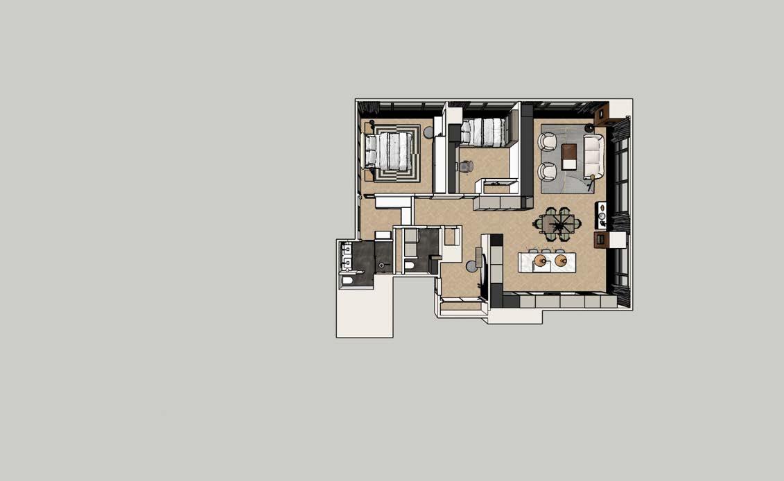 L'espace est conçu pour un couple à la recherche d'un espace confortable et calme pour vivre.
