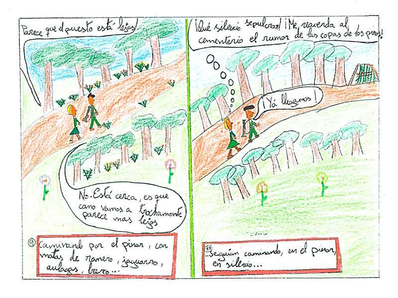 Cómic elaborado en el Colegio Lope de Vega “El Pocito" de Almonte (HUELVA) en el Taller de Creación Literaria en Vivo y coordinado por el maestro Manuel López Vega. Los cómics se realizaron utilizando los textos del libro “Cuando Los naranjos traían flores” de la escritora almonteña Maruja Castilla Báñez.