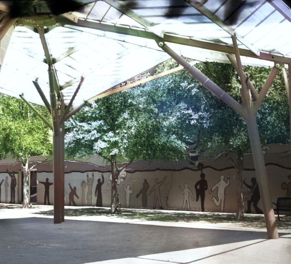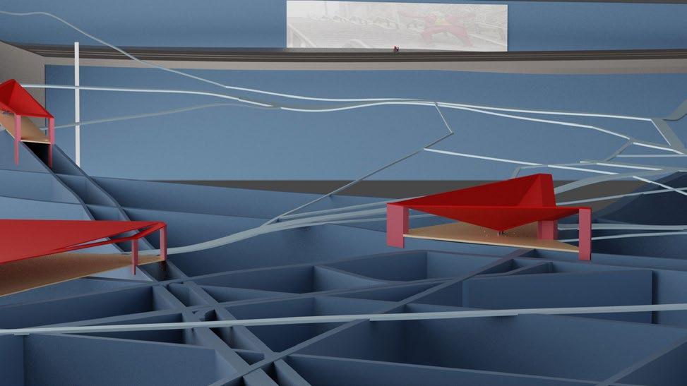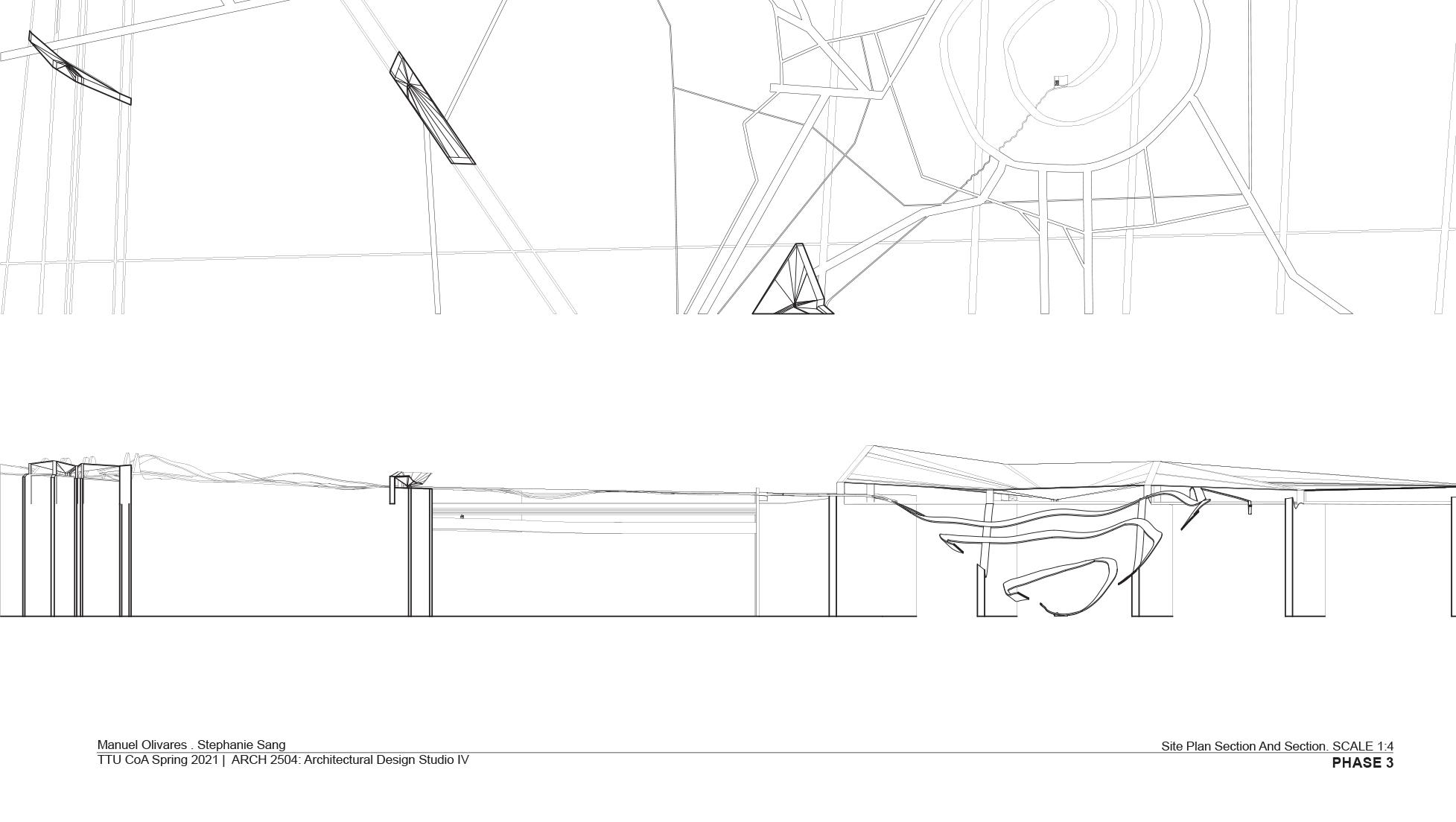 Making our own ground. This was a unique aspect of this project as we tried to make a home for the Terry Allen Archive. The unique ‘canopies’ in this were derived by Allen’s unique asWpects of his music. Next we mesh the unique terrain of the Lubbock and Sacaton Mine in Arizona. The convention of this flat land, and of the mine, which we referred to as the pit and pile, I created a unique ground that affected both the landscape of this drive-in and of this unique archive.