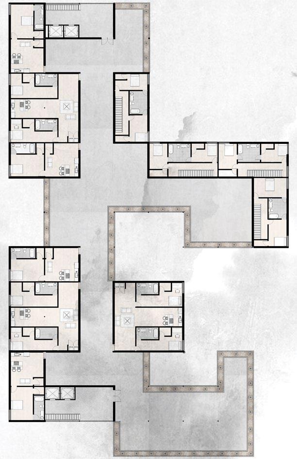 In efforts to support those most vulnerable in thecommunity, these proposals focus on developing affordable housing that goes beyond the necessities of providing adequate shelter. To go beyond just providinghousing security, these proposals assist residents through various economic programs utilizing the inherentsocial fabric of the projects to better people’s lives. Methods introduced in these proposals to support residentsinclude flexible spaces to house workshops to educate residents on employment assistance, budgeting, andfederal application assistance. Additionally, program spaces are integrated into the proposals that are considered“daily support” such as daycare centers, and local grocers; which will even provide cooking demonstrations forresidents. Each element of the proposals aims to create a community that grows, educates, and improves eachother’s lives through the spaces that they call home; To not only improve basic economic outlooks for theresidents but to give them the tools to further sustain themselves and thrive in everyday civic society.