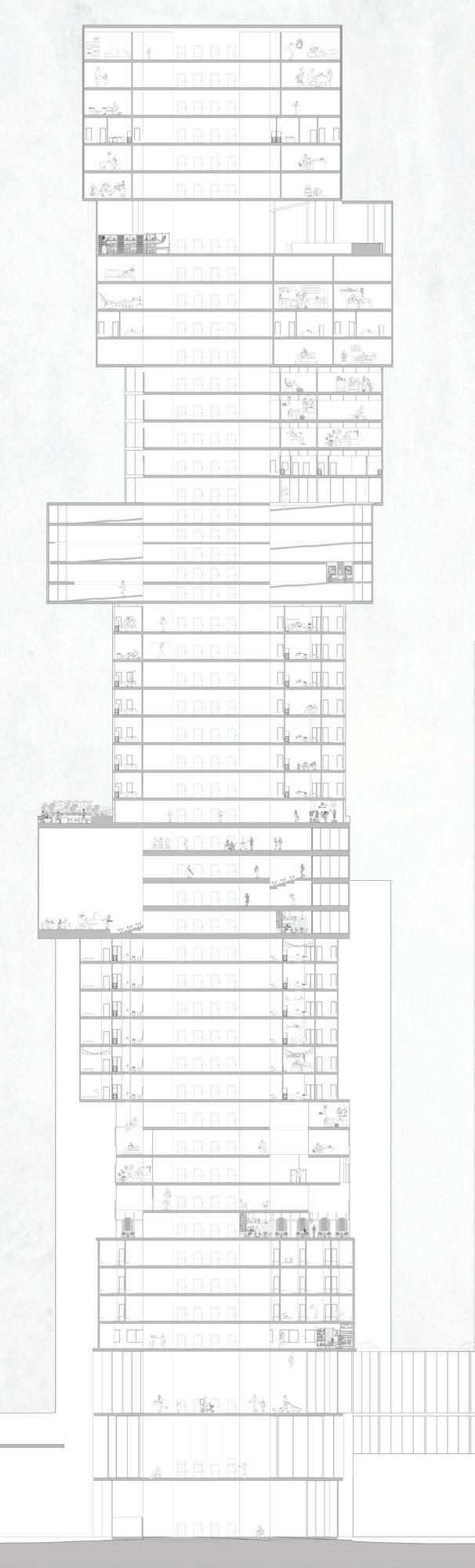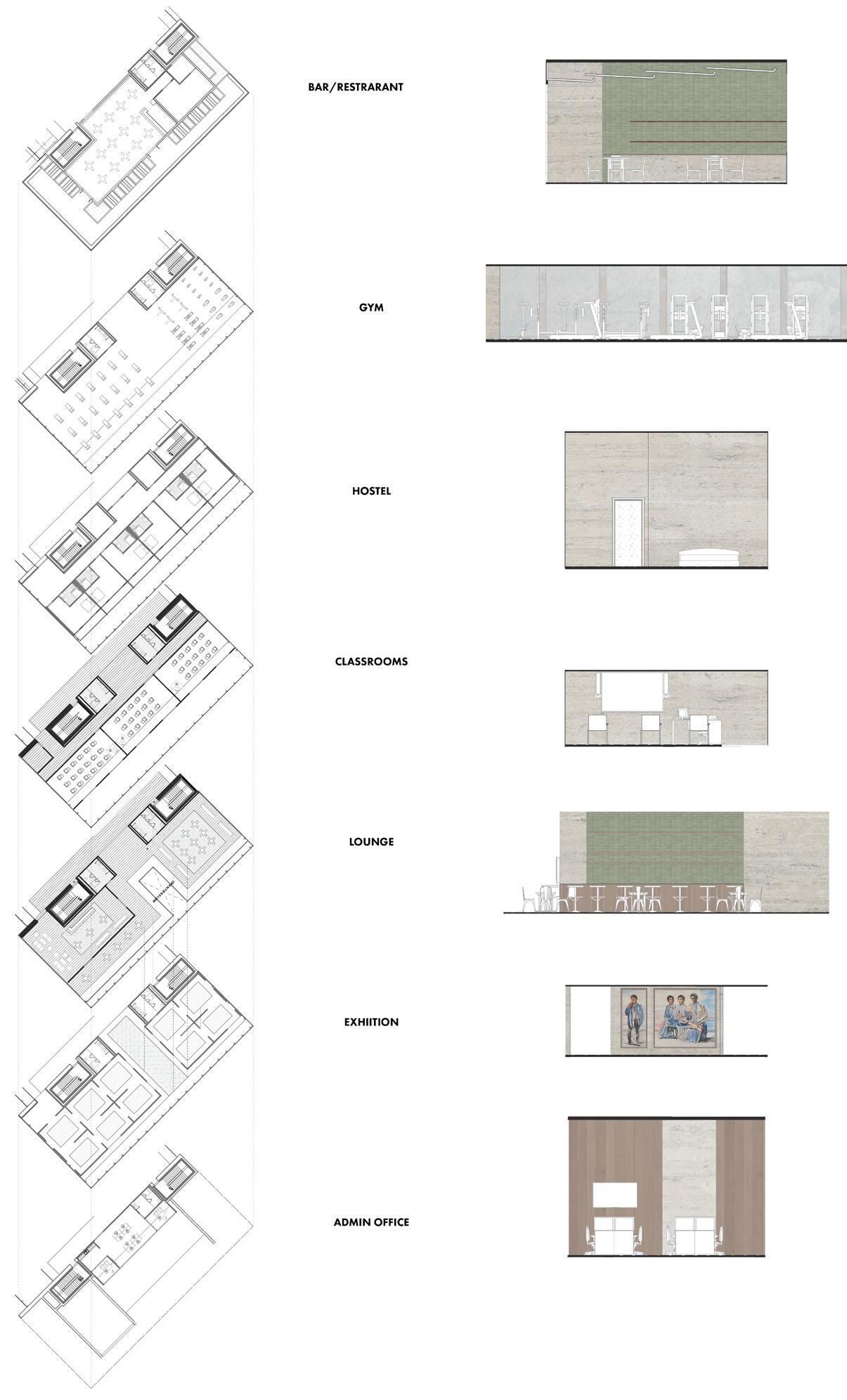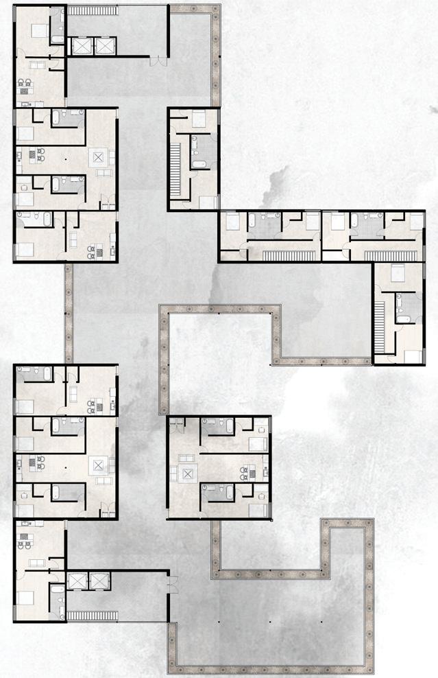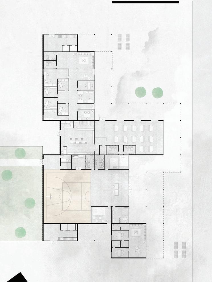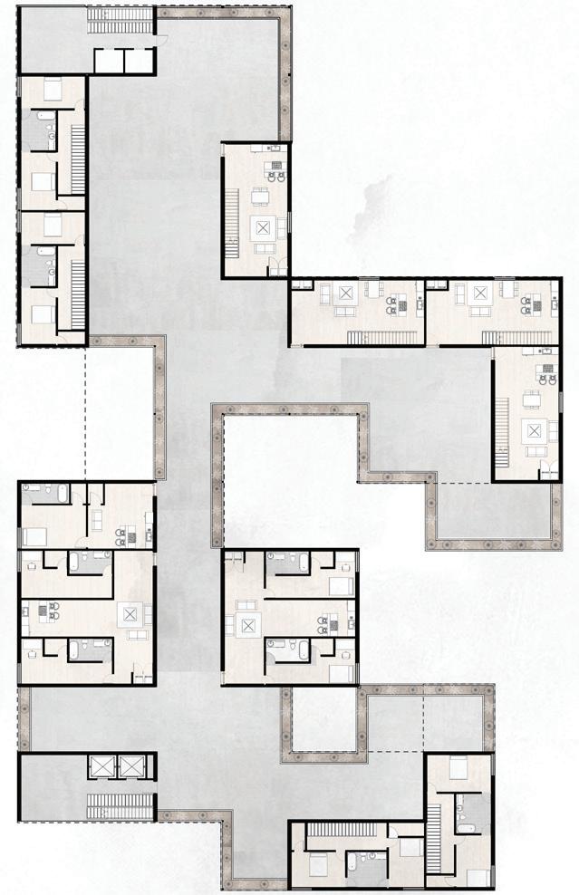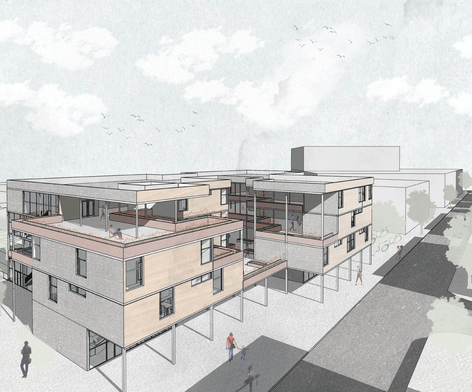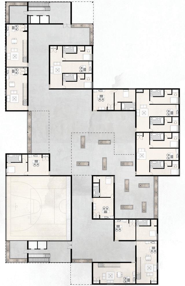 The proposal supports vulnerable community members by developing affordable housing that exceeds basic shelter needs. These initiatives go beyond housing security, offering economic programs integrated into the social fabric of the projects. This includes flexible spaces for workshops on employment assistance, budgeting, and federal application support. The proposal also features “daily support” program spaces such as daycare centers and local grocers, including cooking demonstrations. Overall, the goal is to create a community that fosters growth, education, and improved lives, providing residents with tools for sustained wellbeing and success in civil society.