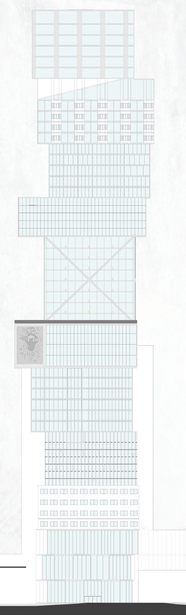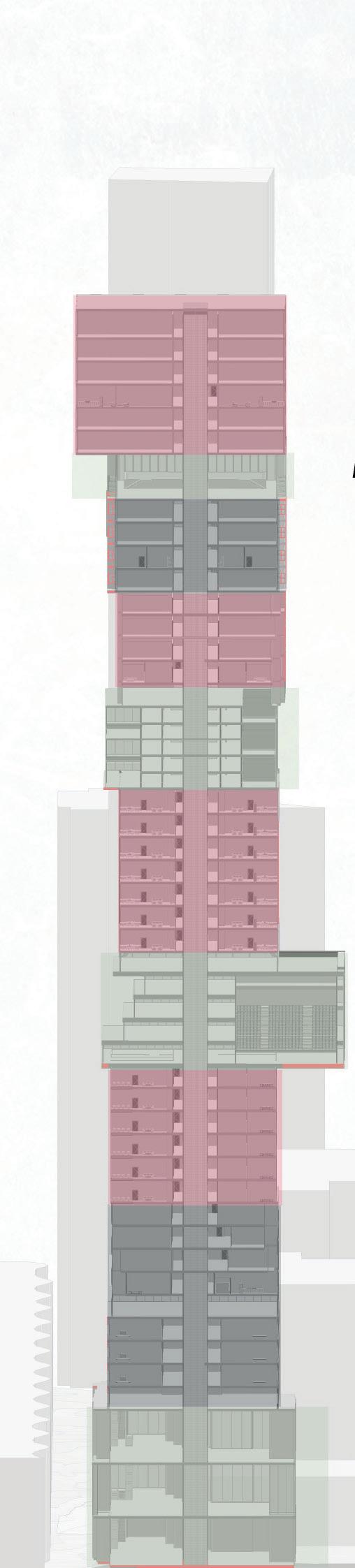 The architectural concept for a new tower on Howard Street is inspired by a linear video of Market Street, capturing the essence and dynamism of San Francisco. This inspiration is transposed into an array of forms and volumes, as outlined in an initial series of diagrams. These forms are subsequently segmented into distinct sections, referred to as “strips,” each representing a unique identity reflective of the city’s diverse architectural heritage.