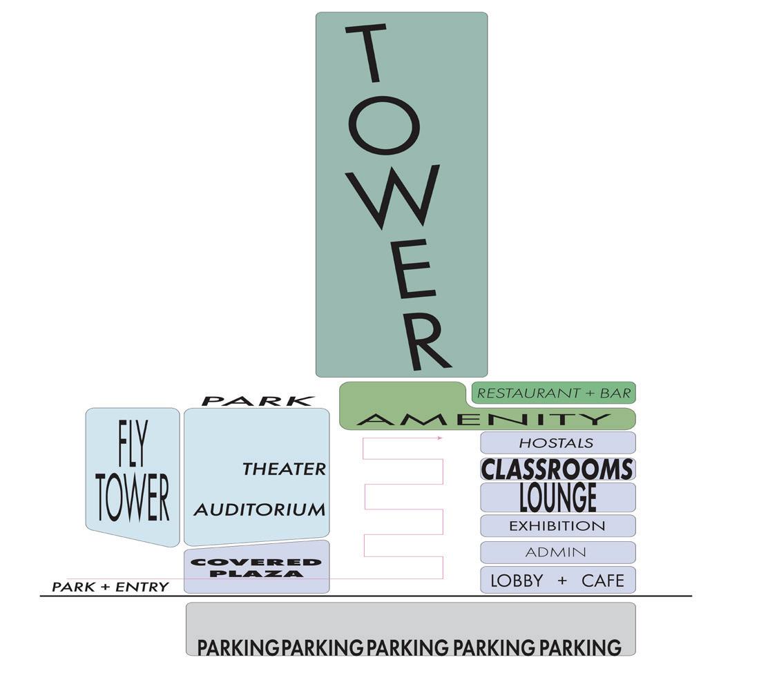This project is located in downtown Austin, Texas along two major arteries of entertainment, 5th and 6th street, and nestles itself within the surrounding urban fabric as it charges the public presence around Republic Square park. Three main principles drive the design of the building: performance of space, transparency, and circulation/ procession. The project aims to challenge the existing urban condition of downtown Austin, creating spaces that serve the public presence at multiple scales.