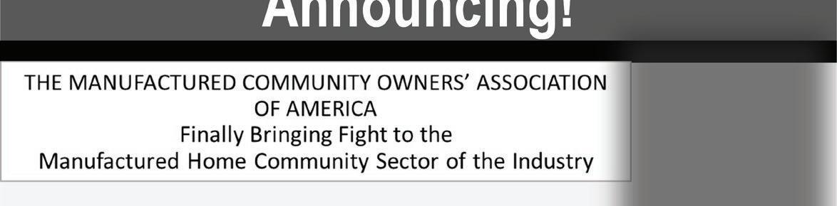 INTRODUCING the Manufactured Community Owners Association of AmericaAnEnthusiasticIndustryAdvocate
