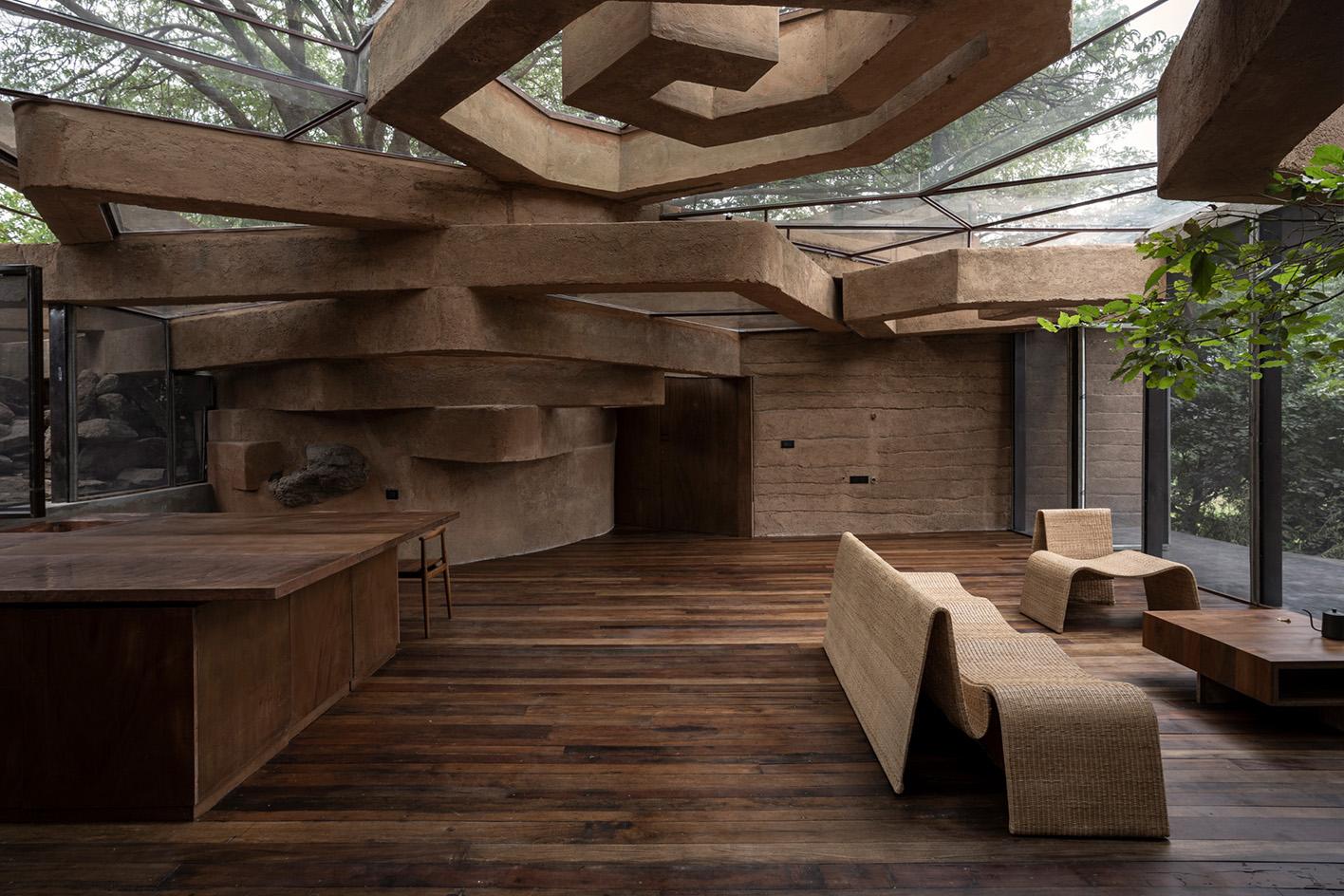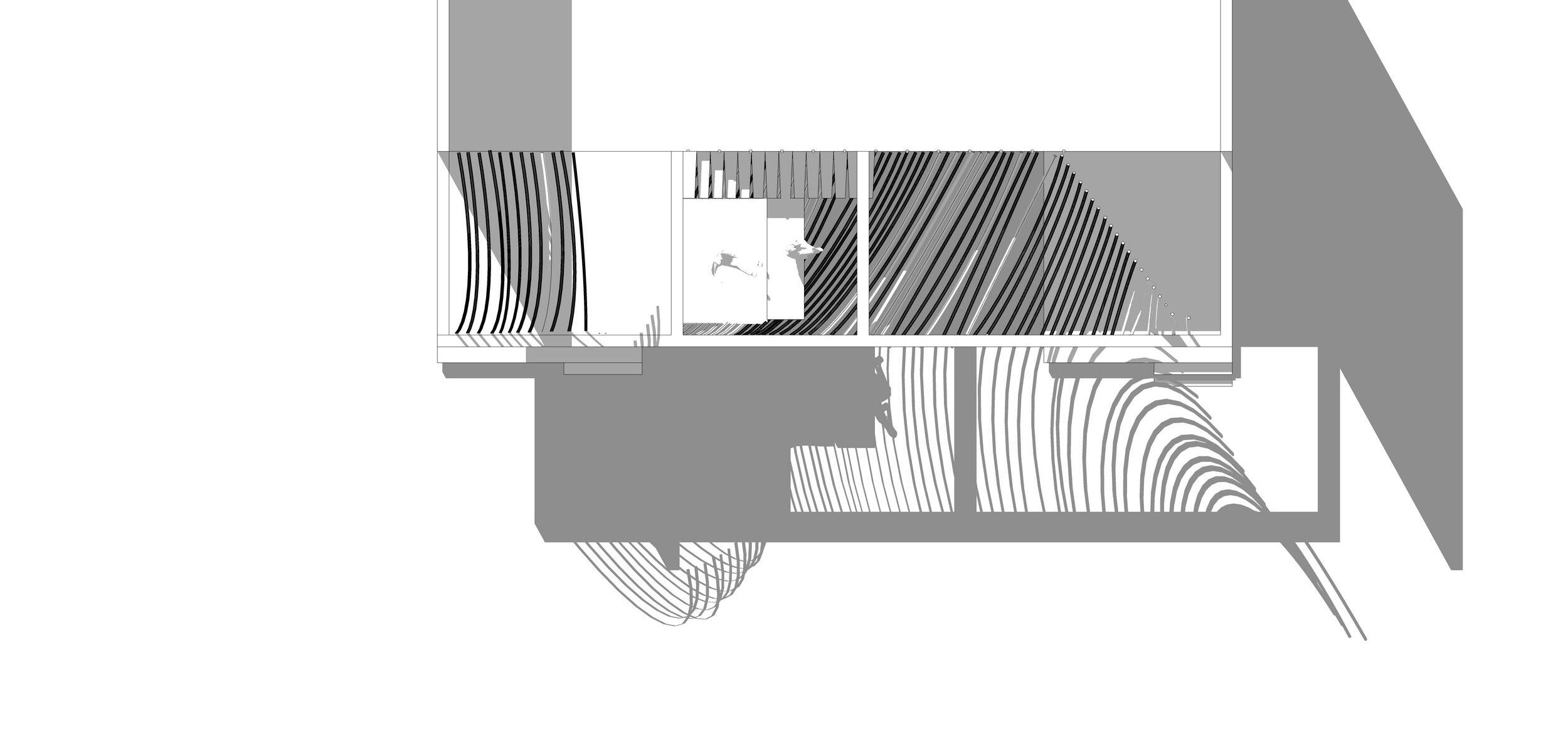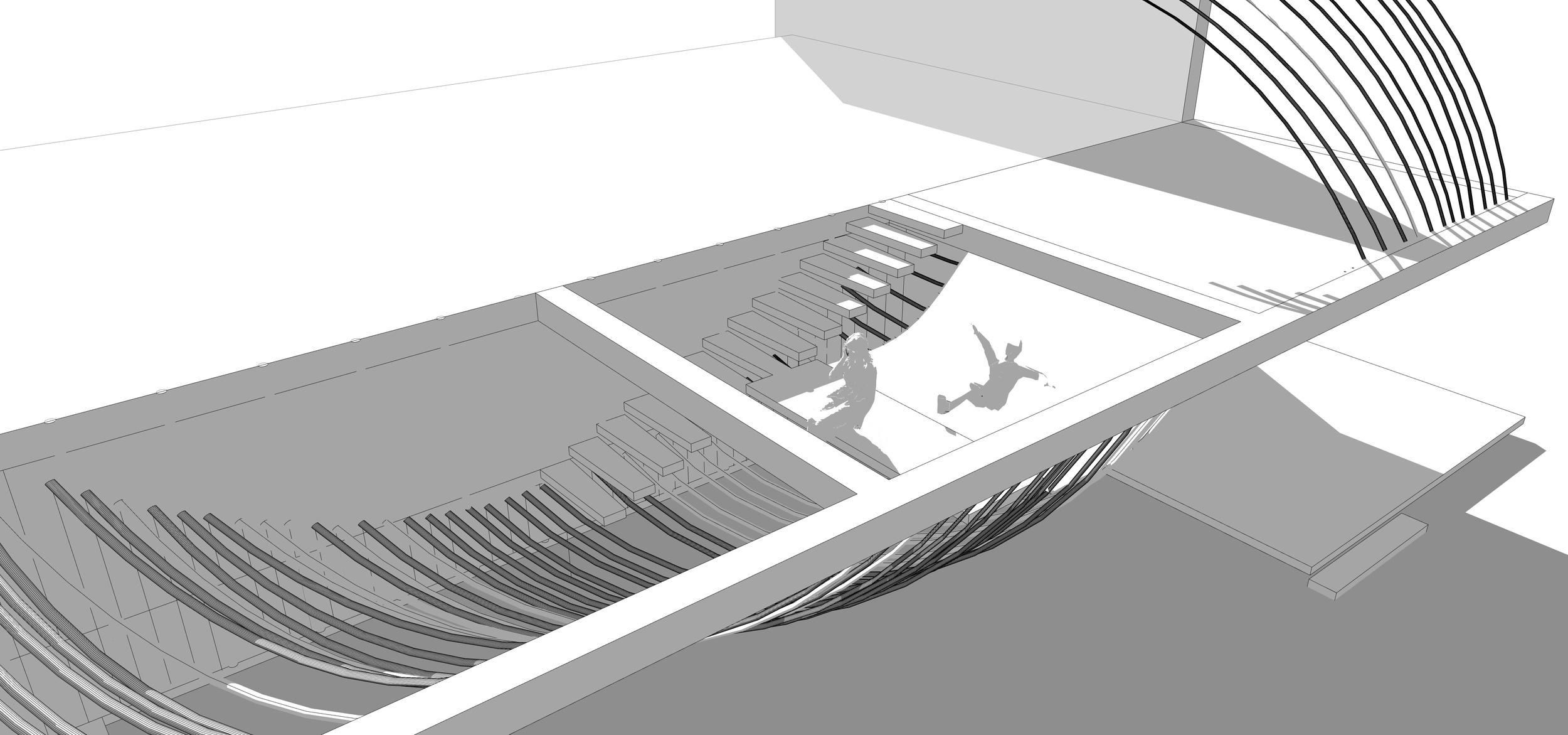 E X T E N D I N G T H E F A C A D E A N D R E P E A T I N G T H E B A M B O O P A T T E R N W H I C H A C T S L I K E A P E R G O L A F O R S O M E P L A Y O F L I G H T W H E N P E O P L E A R E U S I N G T H E S P A C E E X T E N D I N G T H E M I D D L E S T E P F O R E X T R A S E A T I N G S P A C E A N D T H E S A M E S T E P A C T S A S A S U P P O R T F O R A H A M M O C K