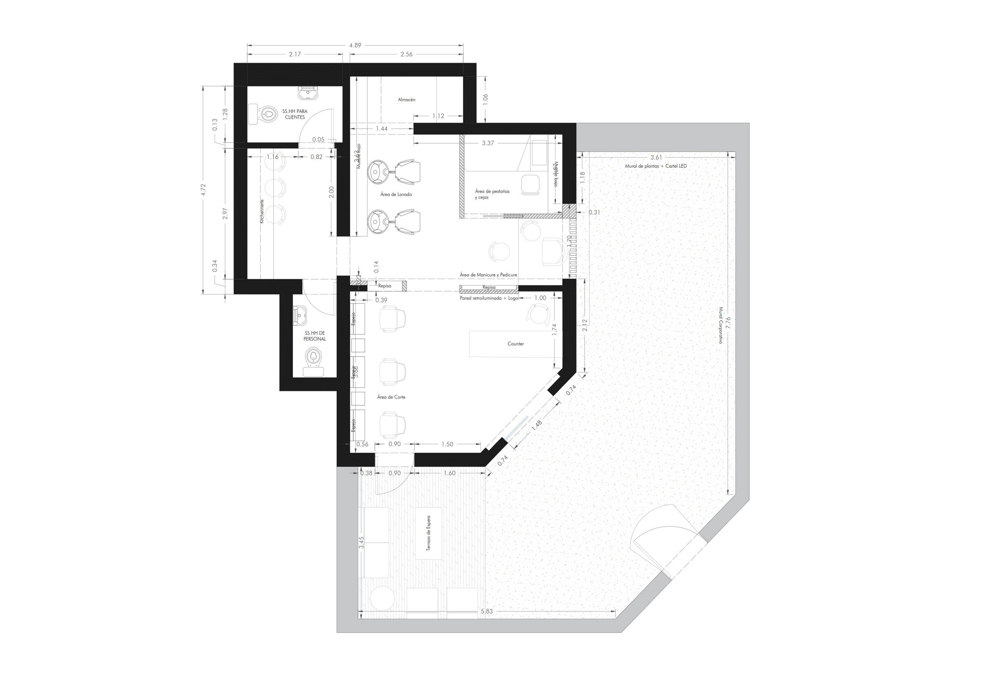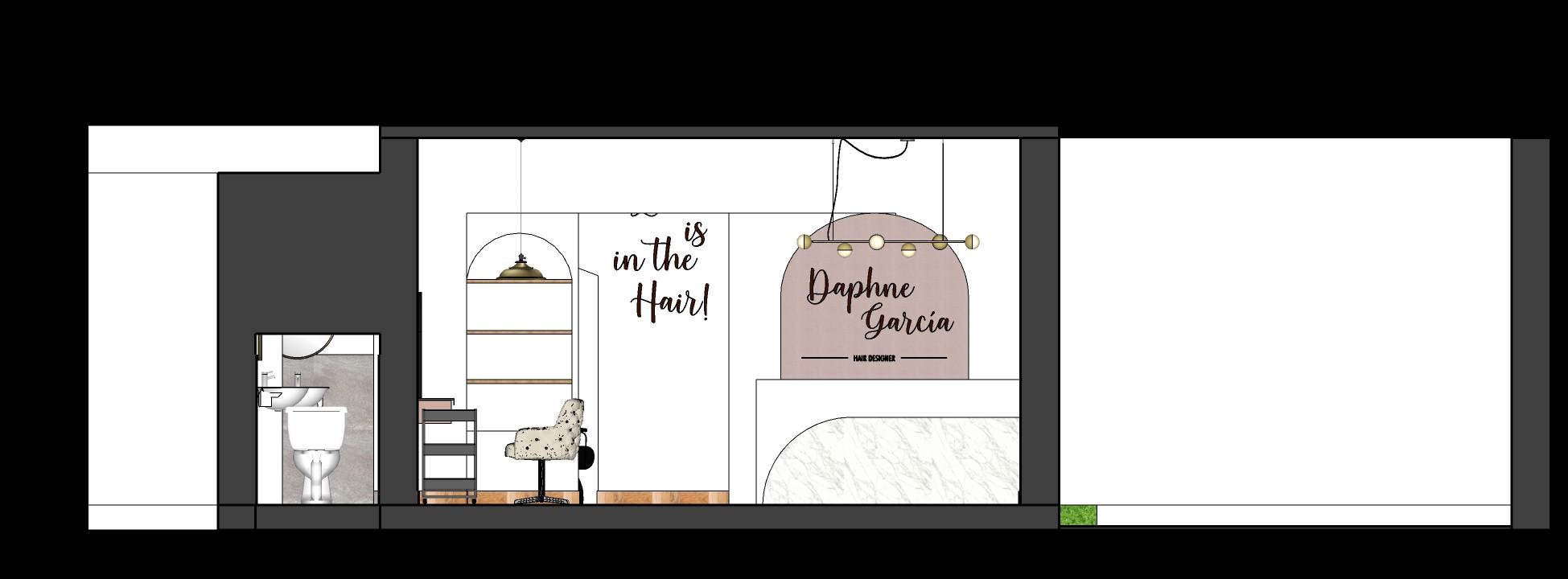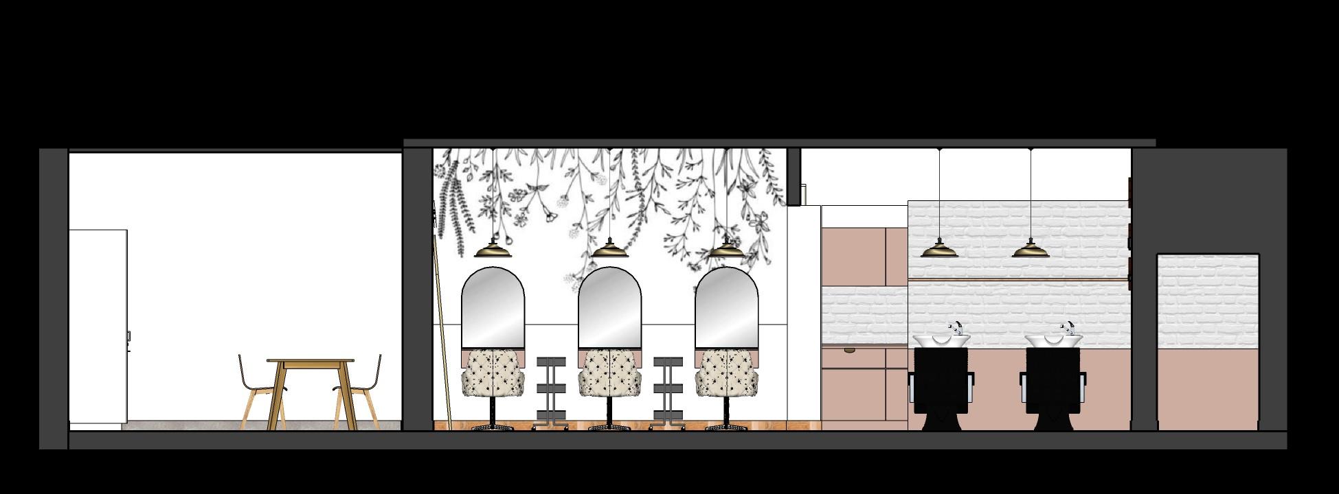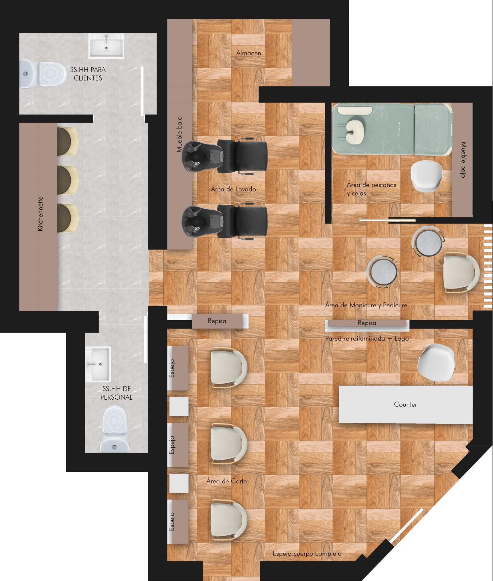 Estación Corte: Silla Alejandra + espejo 0.80x0.60m + modulo flotante y auxiliar