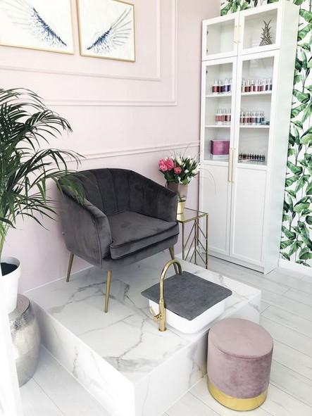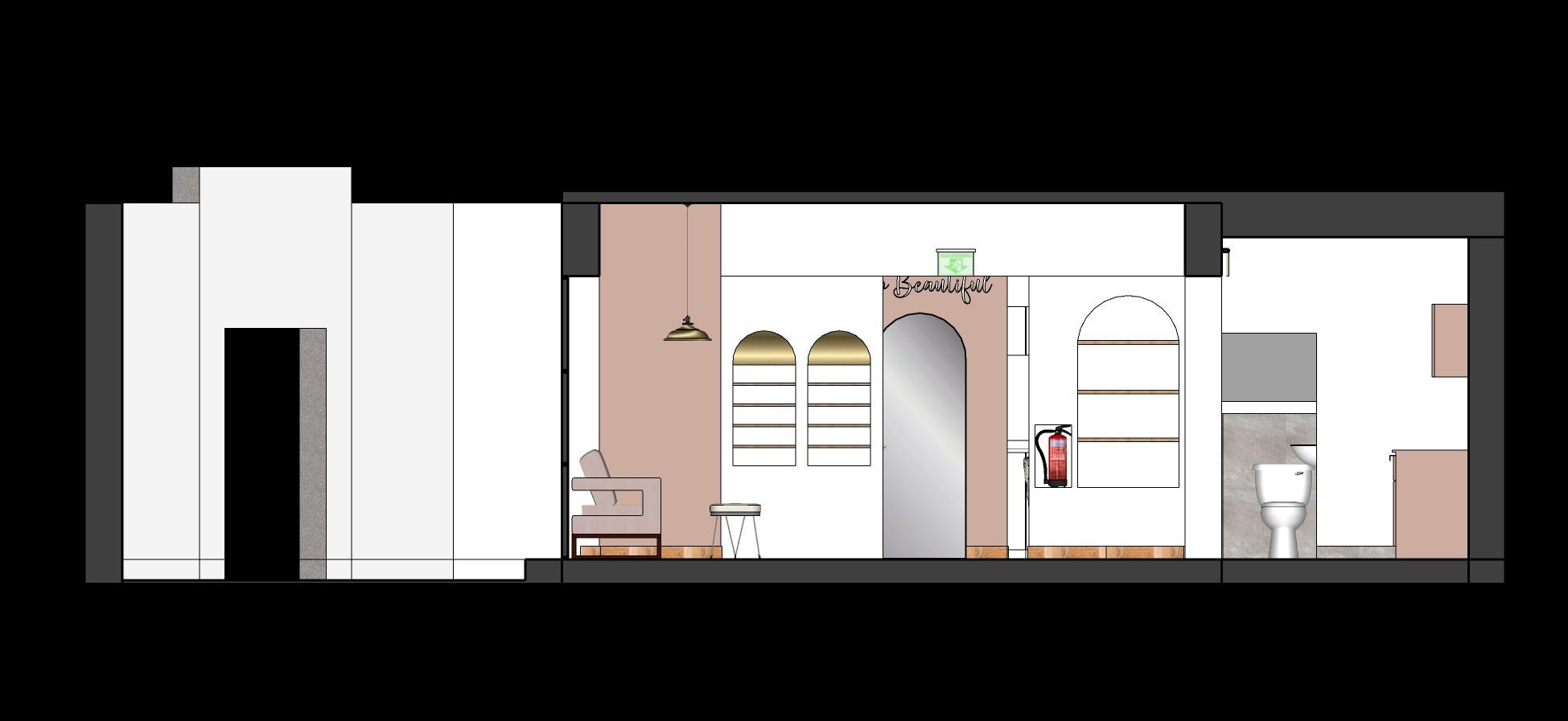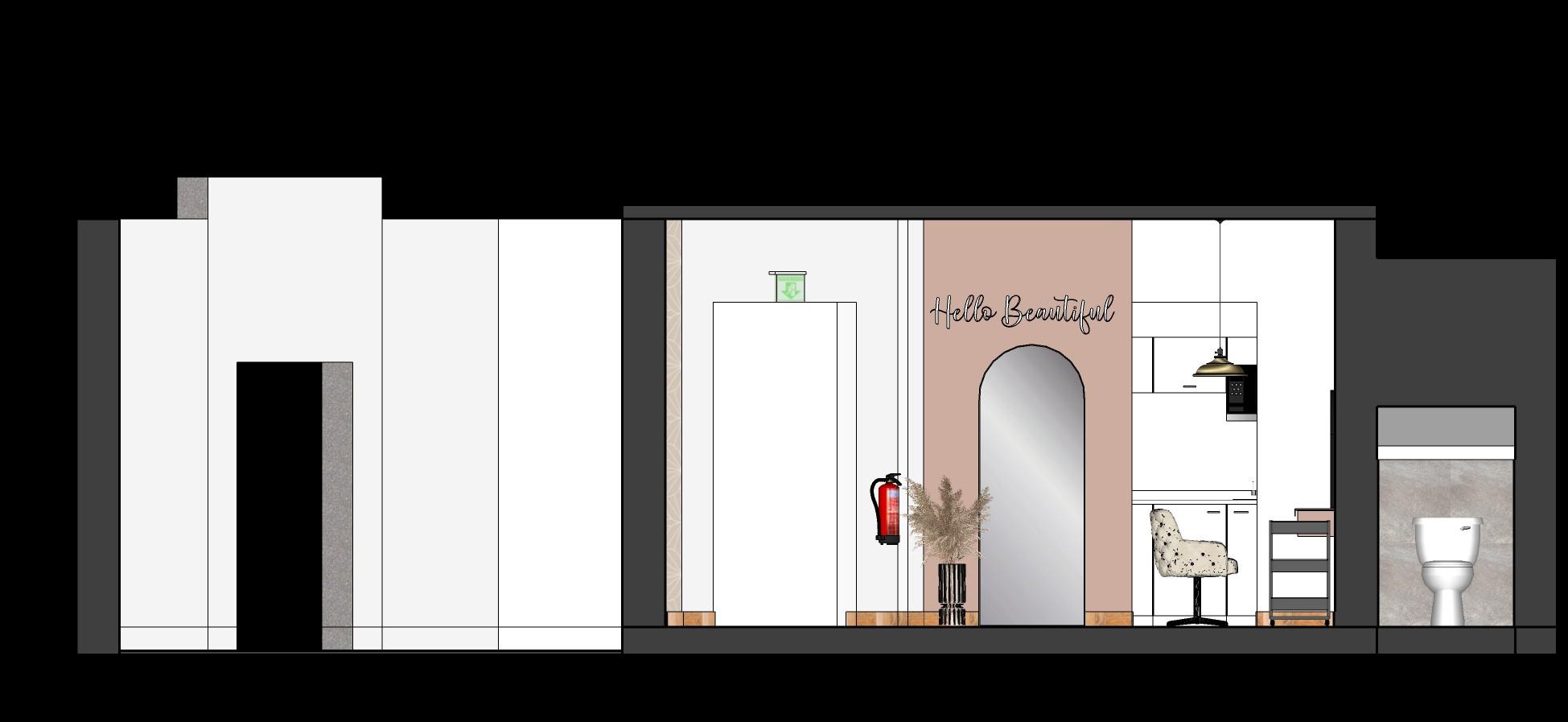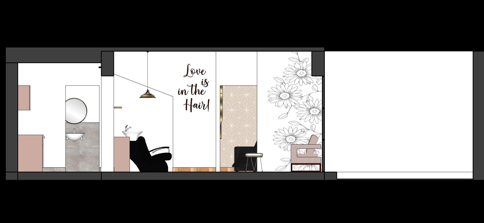 Estación Corte: Silla Alejandra + espejo 0.80x0.60m + modulo flotante y auxiliar