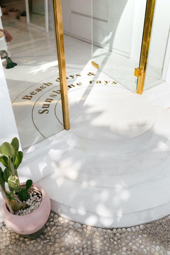Terraza con mobiliario exterior, cojines tonos tierra, macetas grandes e iluminación cálida y acogedora.