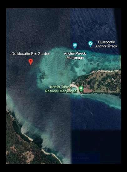 Menjangan yang terletak di bagian barat. Nama "Eel Garden" berasal dari banyaknya belut taman (garden eel) yang tinggal di dasar laut.