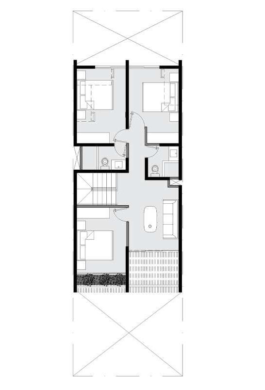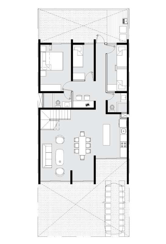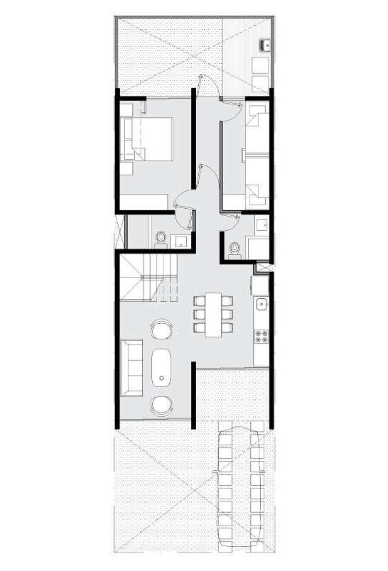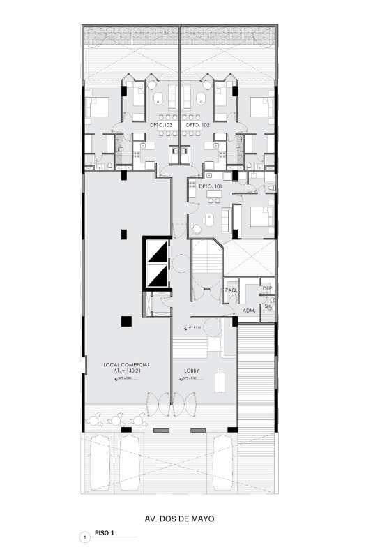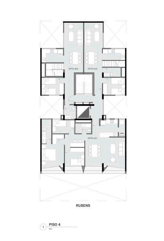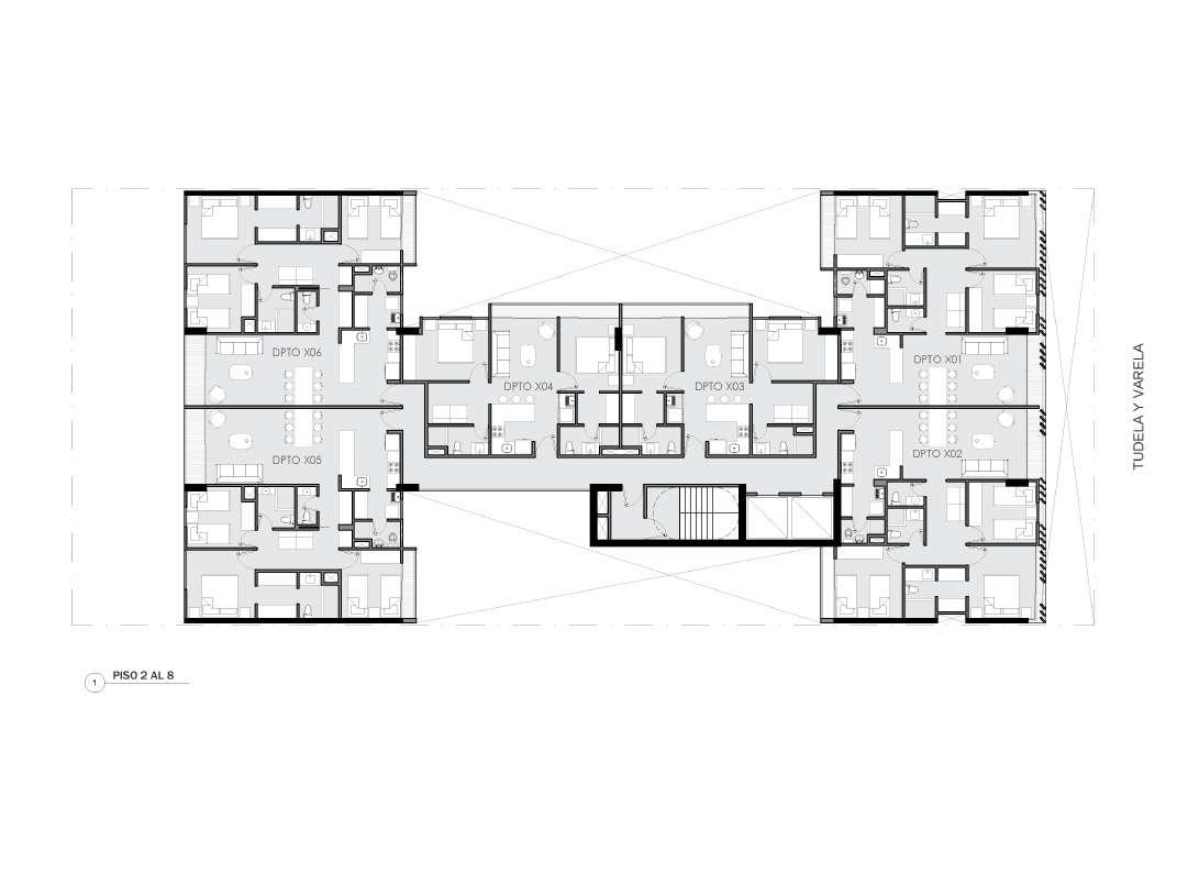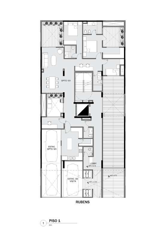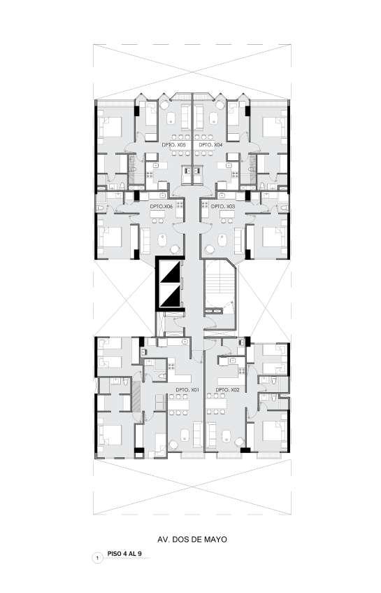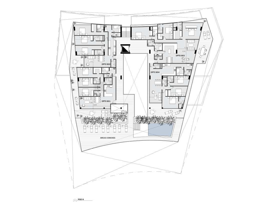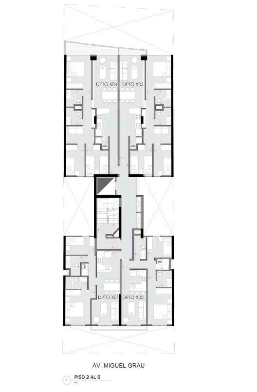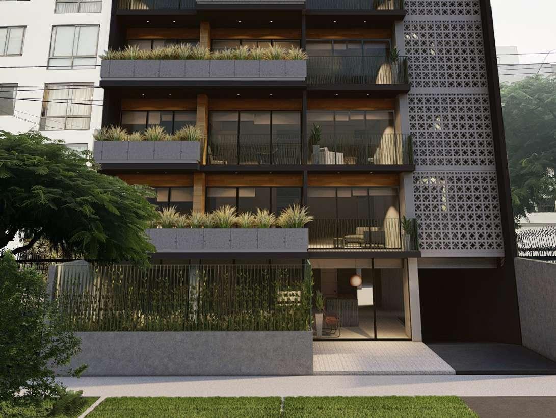 Por el área del terreno y sus parámetros, solo se pudo desarrollar un departamento por nivel, por lo que cuenta con 5 departamentos generosos de entre 115 y 265 m2, con amplias salas y comedores, cocinas y dormitorios.
