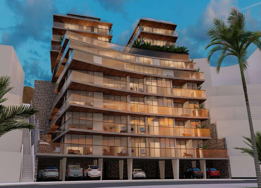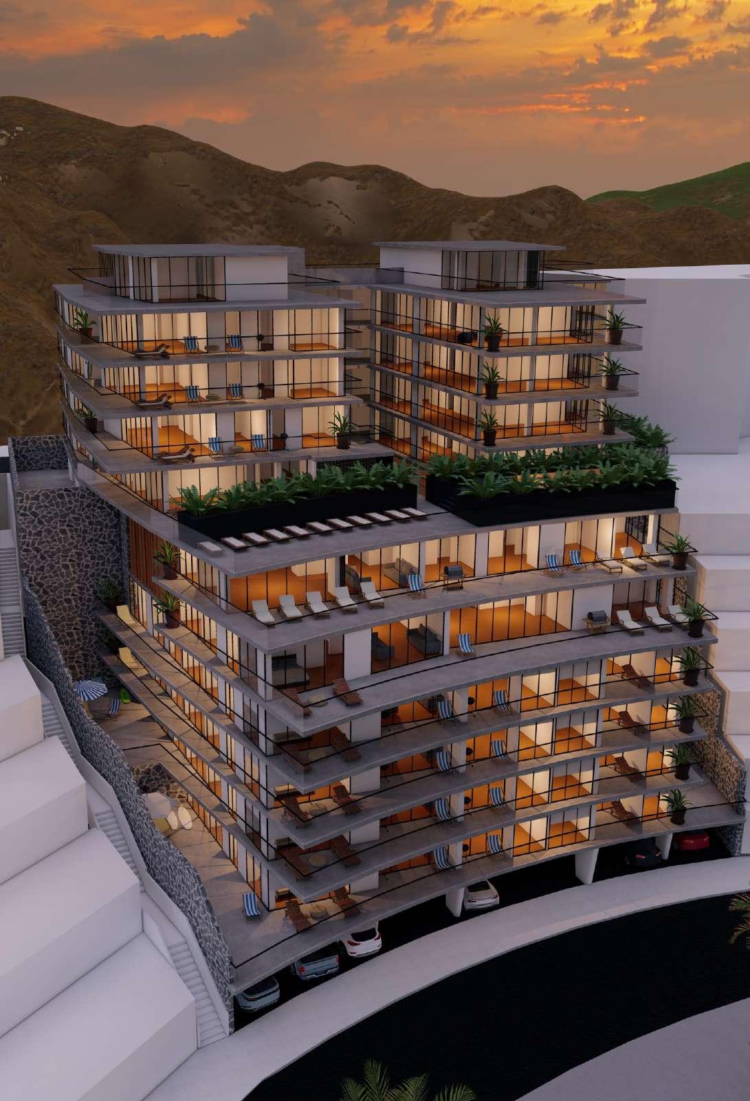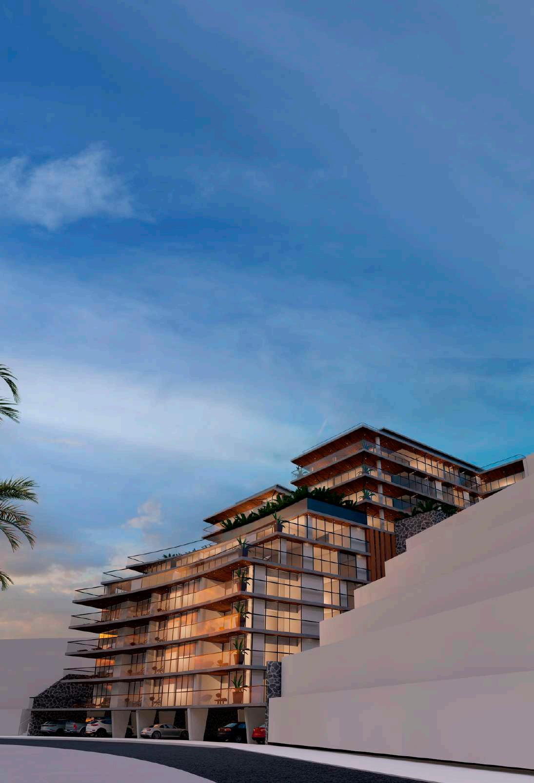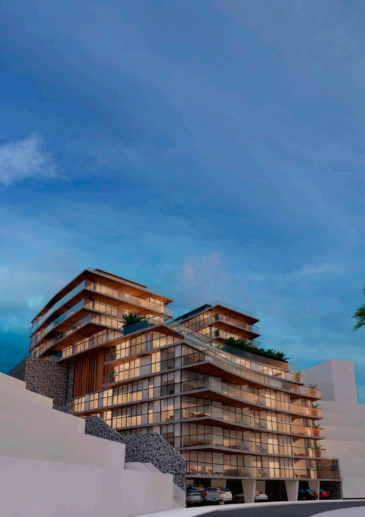 Es conformado por 34 departamentos de 90, 150 y 180 m2 respectivamente, donde su diseño, disposición en el terreno y alturas ha permitido que todos tengan vista directa al Océano Pacífico. En el octavo nivel cuenta con una terraza común, solárium y piscina.