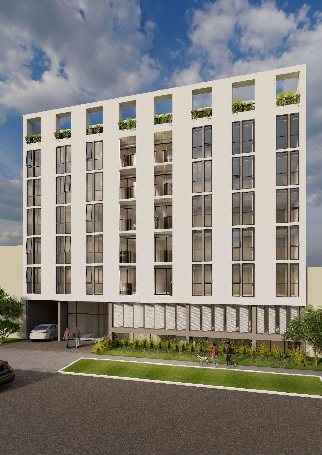 Unidades: 34 departamentos, 42 estacionamientos simples y 14 estacionamientos dobles