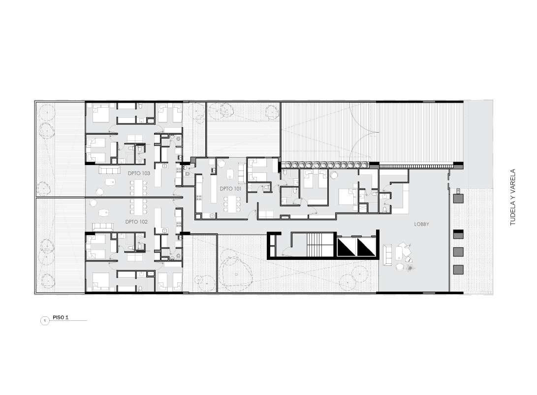 Ubicado en la Av. Tudela y Varela, vía residencial en el distrito de Miraflores límite con el distrito de San Isidro, el proyecto multifamiliar “Tudela y Varela” se sitúa sobre un terreno de 915 m2.