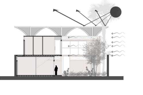 Contenedores con armadura de tijeral para lograr una altura interior de 3 metros y ventilación cruzada