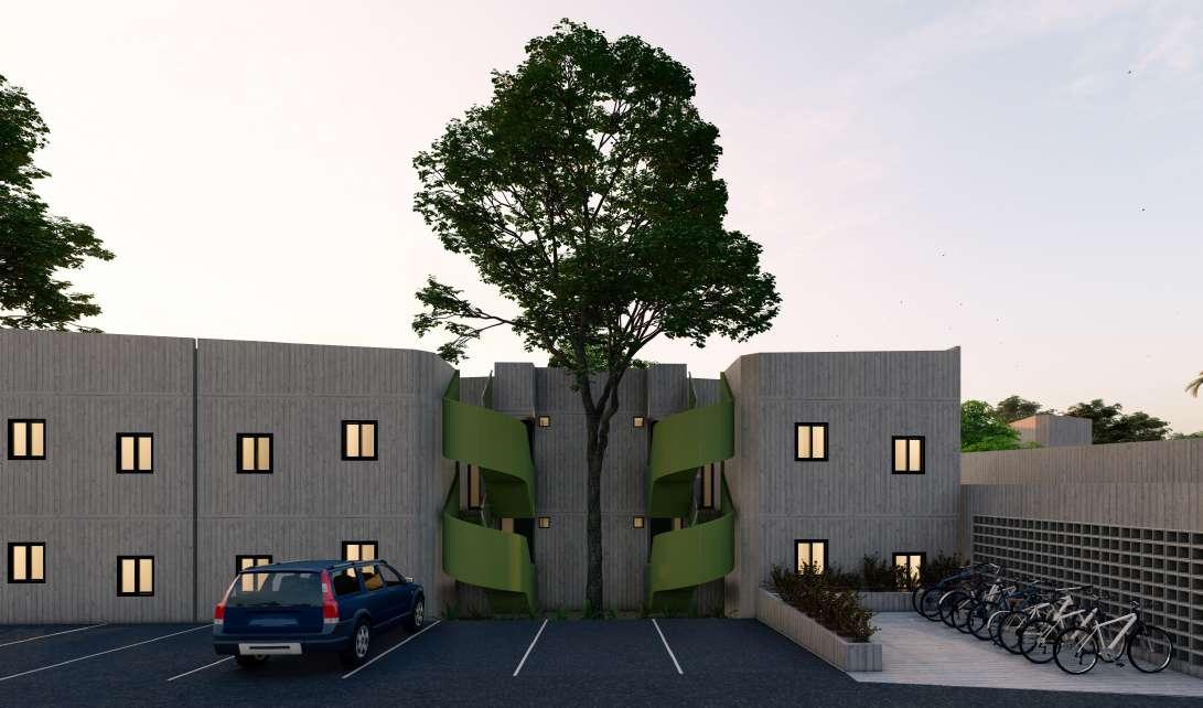 En el interior de la Universidad Nacional Agraria La Molina, sobre un terreno de 1,188.24 m2, se desarrolla este proyecto de residencia universitaria.