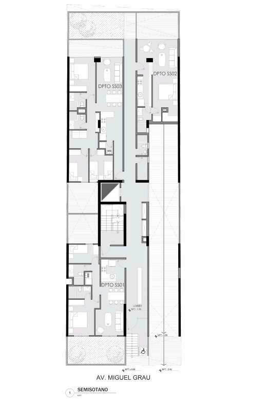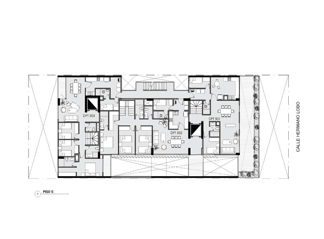 En una zona residencial del distrito de San Borja y sobre un terreno de 600.00 m2 se ubica el proyecto multifamiliar “Hermano Lobo”. La edificabilidad del terreno y sus parámetros permitió desarrollar 3 departamentos por piso, por ello, MAP toma un partido diferente al típico edificio con pozos de iluminación.