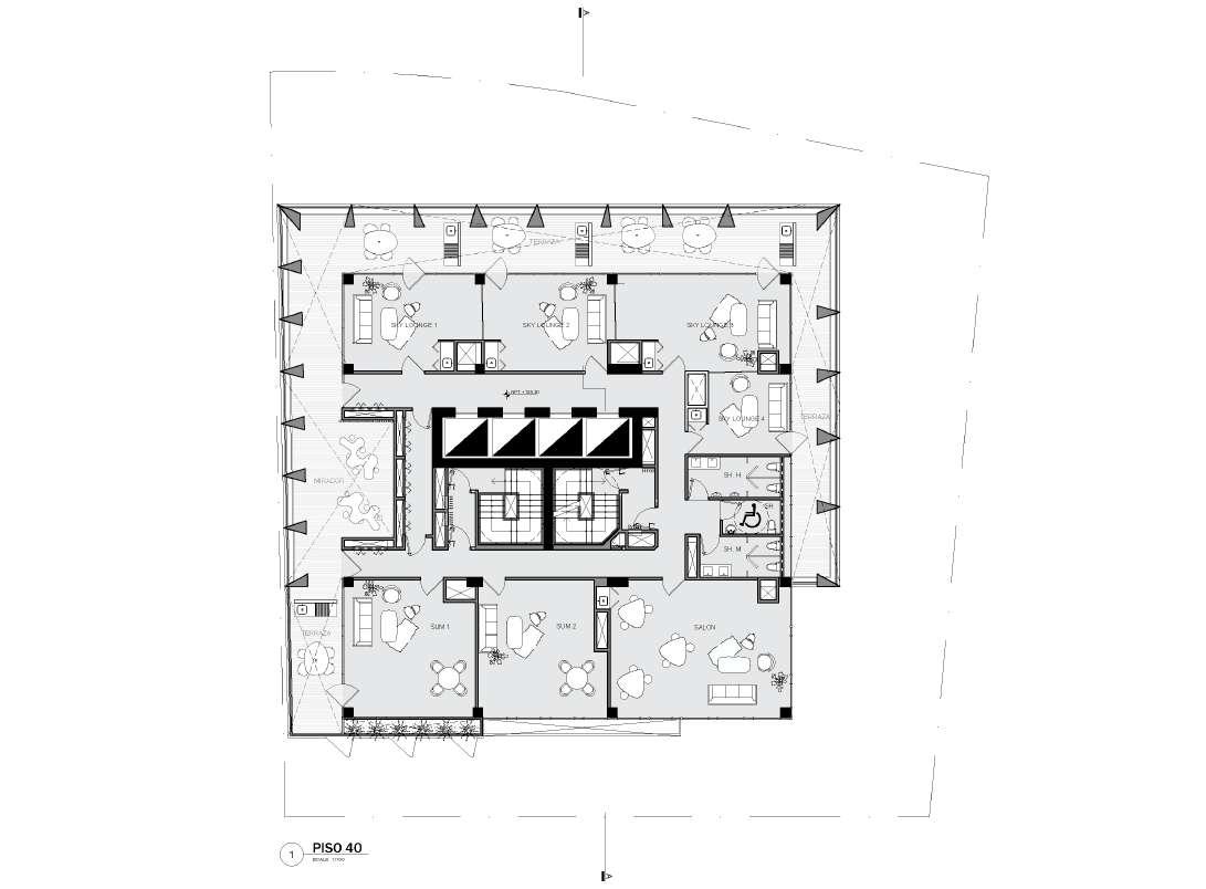 Corte A DUCTO SH. DISCAP. SALA DE ESPERA SALA DE JUNTAS MODULABLE 02 SALA DE MODULABLE 01 SALA DE JUNTAS MODULABLE 03 PISO 8 A C C TERRAZA ESC. 01 lamina pavonada proyección postensada A2 RUTA SERVICIO RUTA OFICINISTA VIENTOS VIENTOS LIMP. SH. DISCAP. SALA DEL PRESIDENTE DEL DIRECTORIO SECRETARIA GERENCIA DE ADMINISTRACIÓN GERENCIA DE FINANZAS GERENCIA DE NEGOCIOS COWORK AUXILIARES ARCHIVO PISO 5 TERRAZA ESC. canaleta con rejilla proyección viga postensada proyección postensada A2 RUTA SERVICIO RUTA OFICINISTA VIENTOS VIENTOS LACTARIO COMEDOR SALA DE SH. PISO 7 9 ESC. A B Paneles fotovoltaicos 440 Wp RUTA SERVICIO RUTA OFICINISTA TECHO