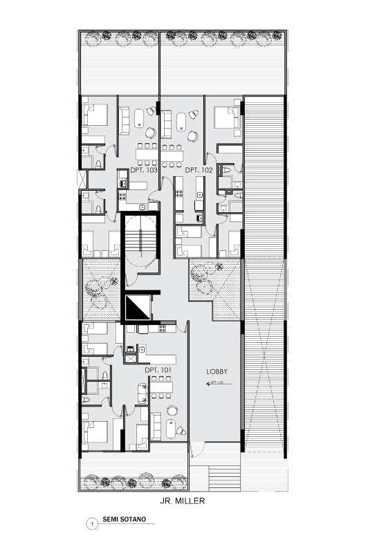 En el Jr. Mariscal Miller, vía residencial del distrito de Lince límite con el distrito de San Isidro, se ubica el proyecto multifamiliar “Miller” sobre un terreno de 561.44 m2.