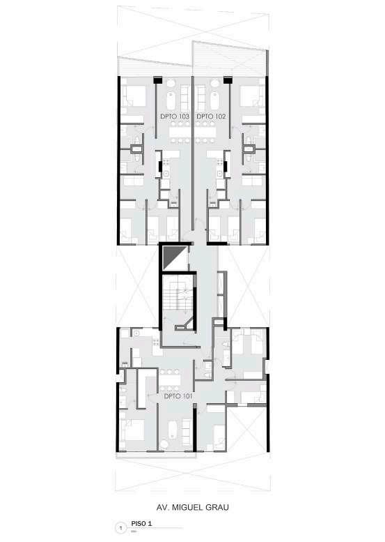 Cuenta con 34 departamentos de 60, 90 y 120 m2 al haberse desarrollado bajo la Ord. 588 de la Municipalidad de Miraflores. En su distribución destacan departamentos eficientes donde se logra el mayor provecho espacial en cada uno.
