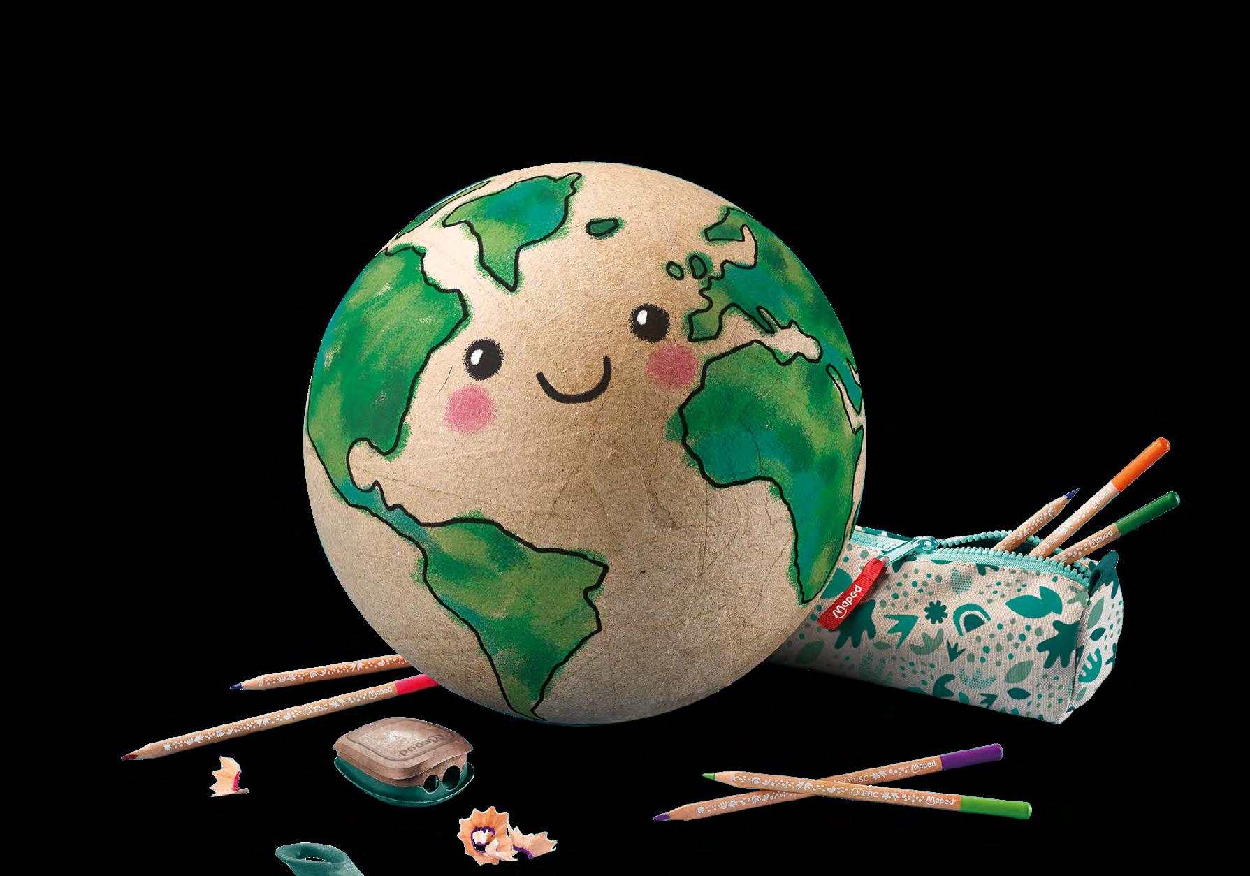 Contains 36 felt tip pens, 1 Glitter felt-tip pens, 36 Strong Green pencils, 3 Duo World pencils, 12 Pastel FSC pencils, 14 Aqua pencils, 20 Infinity pencils, 24 wax crayons, 1 Brush, 1 graphite pencil, 1 eraser and 1 pencil-sharpener Smiling Planet.