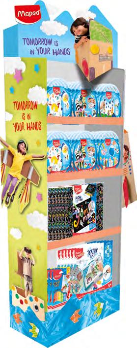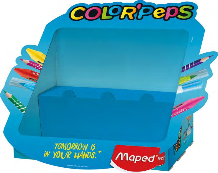37 © Maped Creativ 2023 • Dim. Box (W x H x D in cm) DISPLAYS 25 min 25 min Ref. 998383 Ref. 998102 40 x 185 x 30 40 x 175 x 30 1 1 Cardboard floor Cardboard floor 1/8 Pallet floor standing display with a pegboard back. Delivered with 16 plastic hooks. Available until current stock is depleted. <5 min <5 min 50 x 46,4 x 35,5 42 x 32 x 29 1 1 Ref. 993301 Ref. 993421 My First Counter display