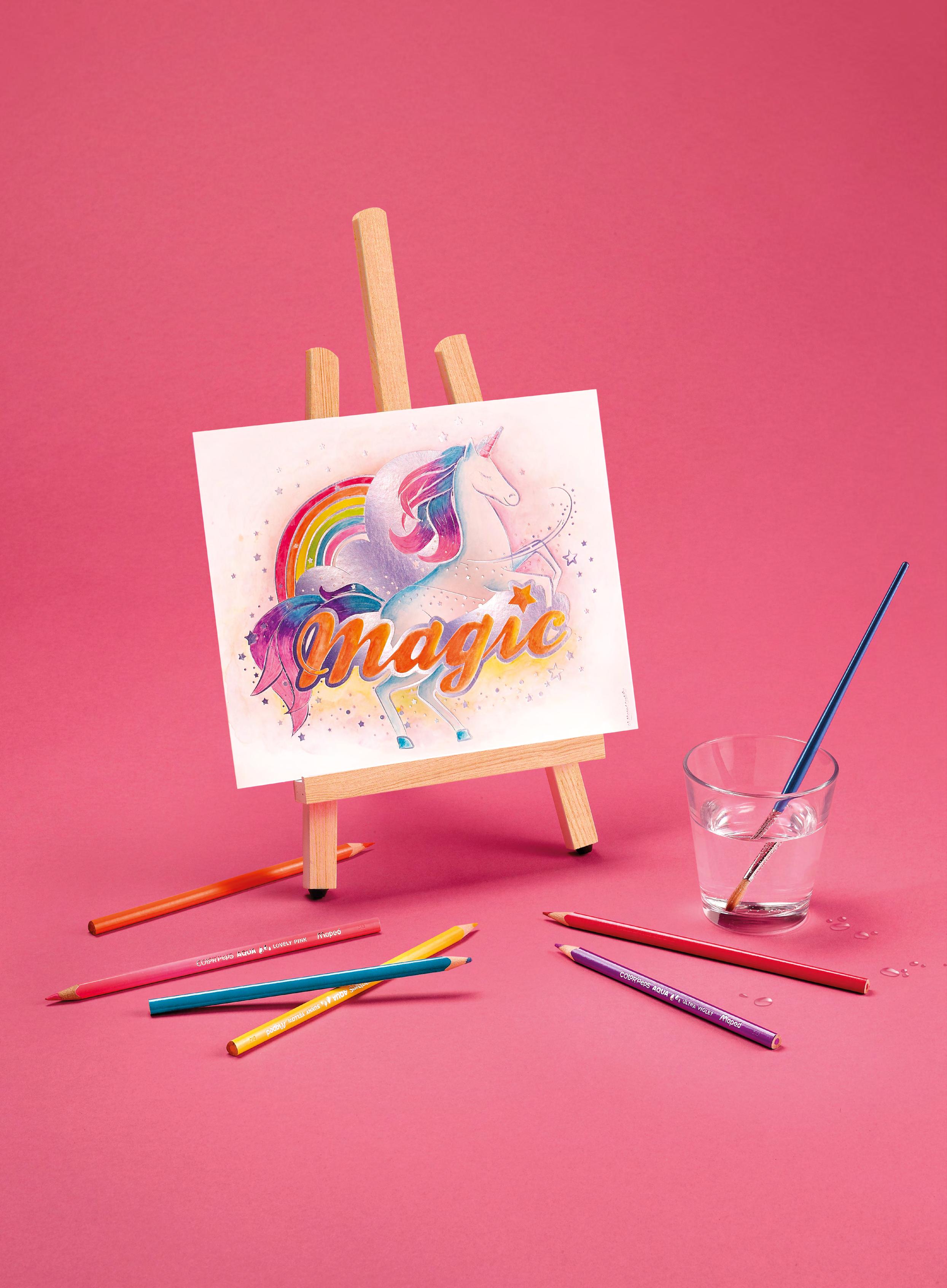 • Guaranteed success thanks to dedicated paints and the Aqua pencil for the details.
