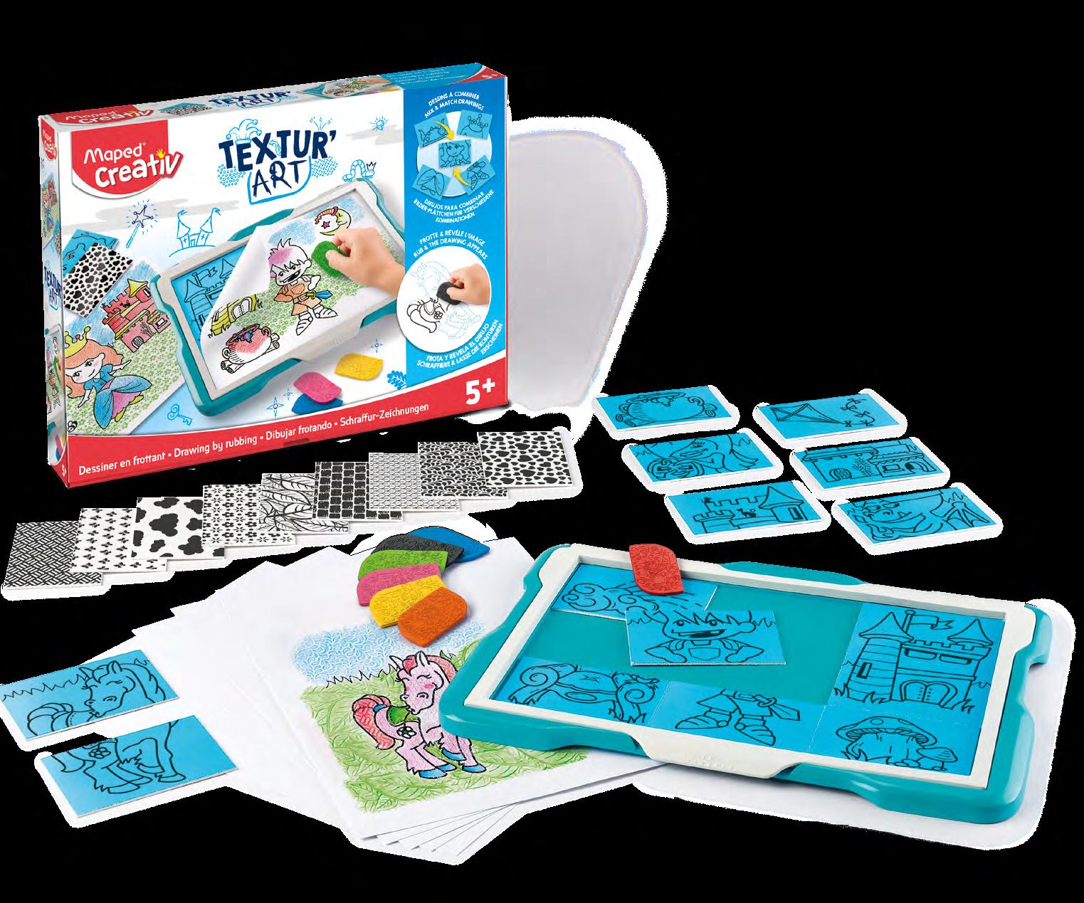 Contains 1 reusable mould (2 figurines), 1 bag of plaster, paint pots (6 x 5.4 ml), 1 paintbrush, 1 Maped Aqua black pencil, 1 wooden spatula, 1 sandpaper, 1 manual.