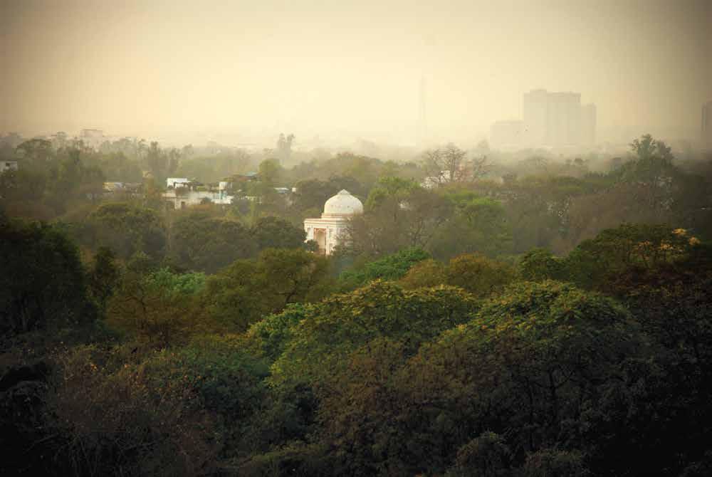 The culture of green space has forever fought a losing battle with the Indian city. In the 70 years of New Delhi’s growth since Independence, the capital’s loss of tree cover has significantly altered its visible characteristics, changing what began as a forested habitation with hidden and obscure architecture, in a frighteningly rapid reversal, into a canvas of ramshackle concrete with a random smattering of green.