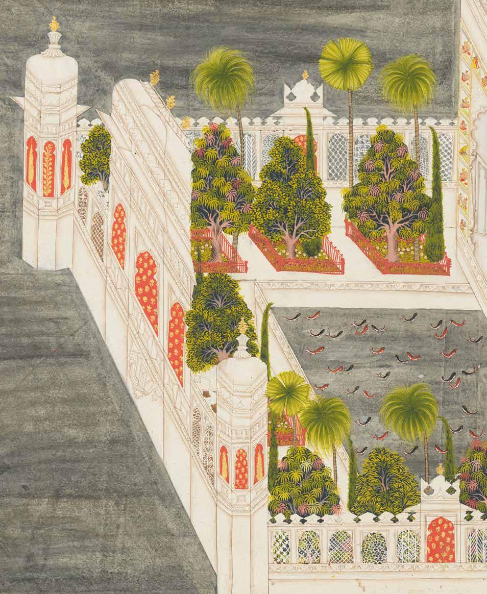 Maharana Ari Singh with His Courtiers Being Entertained at the Jagniwas Water Palace (detail), various artists, Udaipur, Mewar, 1767