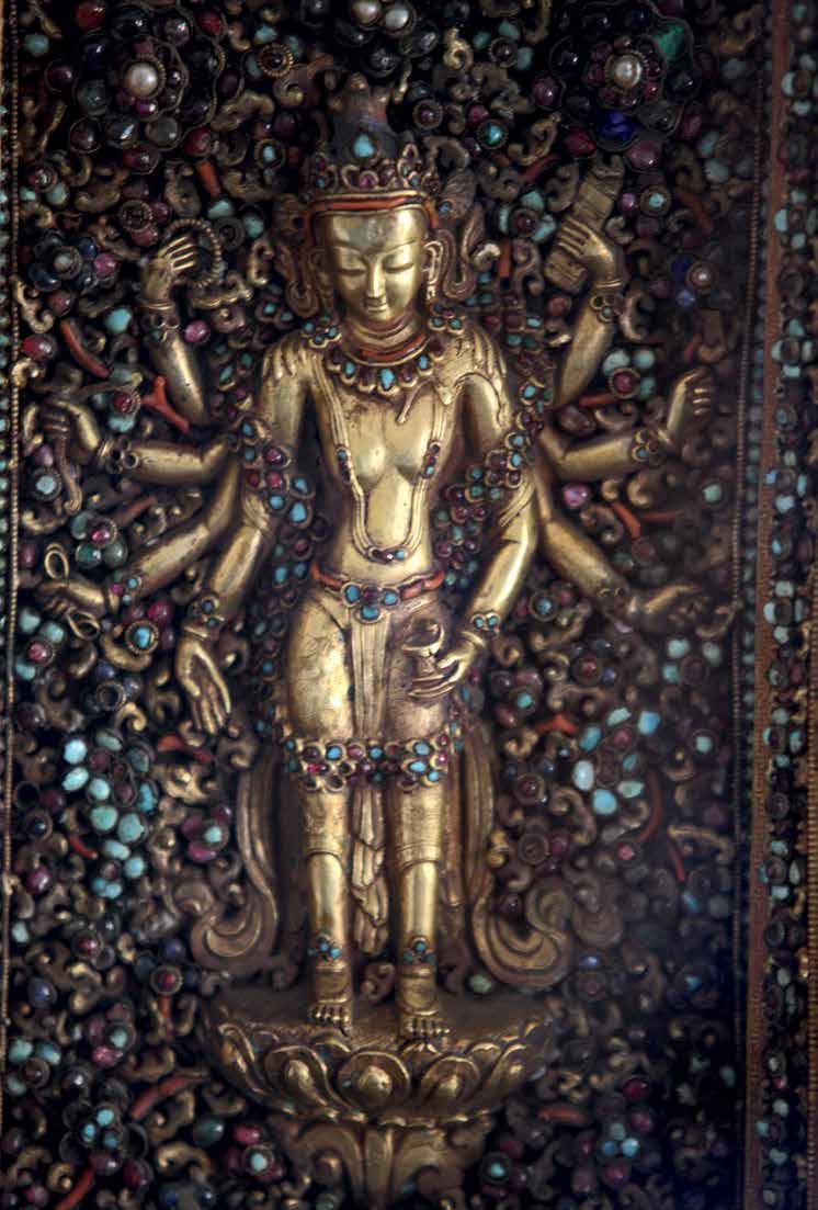 page 19 | A fusion of styles comes together in this gem-studded, multi-armed Buddha, belonging to the Tripura royal family. The plains of Tripura were under the control of several dynasties that ruled in Eastern Bengal and Samatata during the ancient period. Some of these were of the Buddhist faith, while others were Hindu.