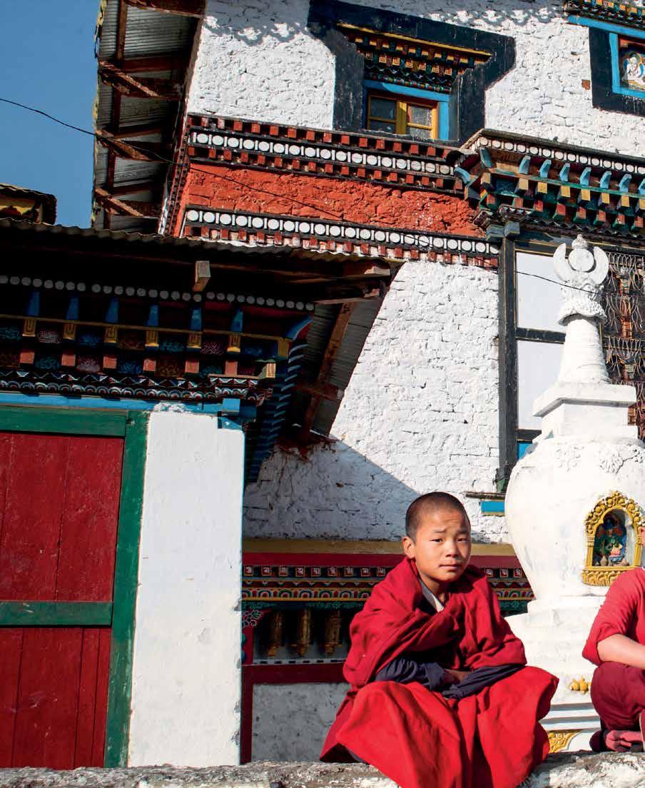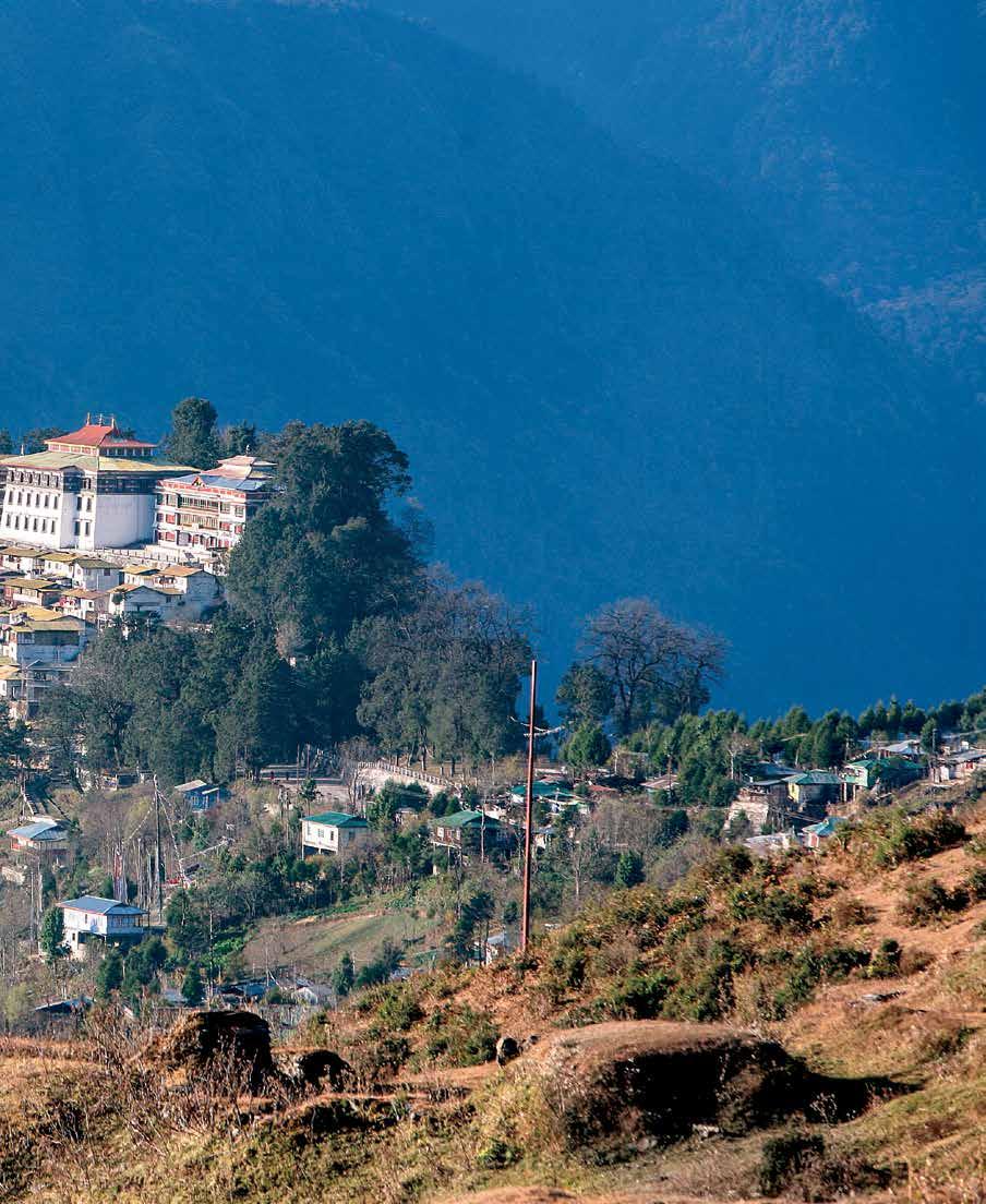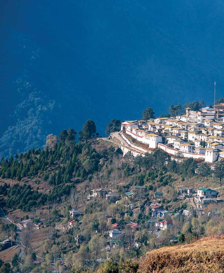 pages 12–13 | Merak Lama Lodre Gyatso founded the Tawang Monastery, whose Tibetan name means “celestial paradise on a clear night”. The name “ Tawang” itself came from ta, Tibetan for “horse”, and wang, meaning “blessing”. Built on a spur, it commands a view of the Gudpi and Chong-Chugmi Ranges, while the valley of the Tawang Chu lies below.