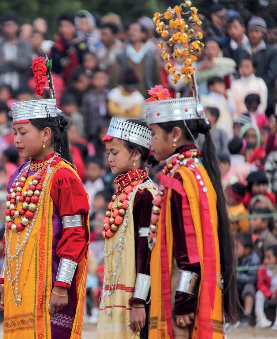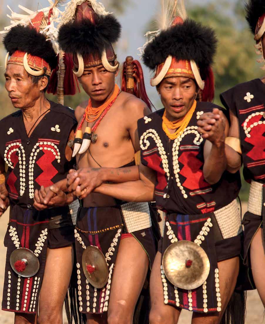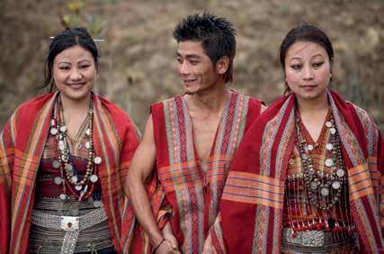 above | Mizo youth dressed in weaves of red, orange and black and decked out in traditional jewellery revel in song and dance.