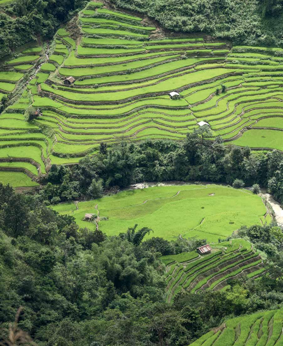 Step-cultivation is to be widely seen across the mostly hilly terrain of the Northeast wherever there is a village or hamlet. The carefully tended beds offer a picturesque sight, drenched in green.